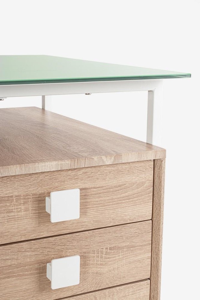 Schreibtisch Thomas 69 x 76 x 142 cm MDF Stahl Glas PVC Braun Weiß