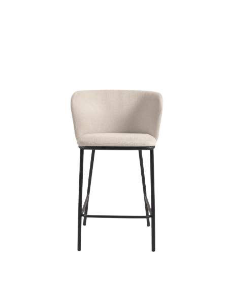 2er Set Ciselia Hocker aus beiger Chenille mit Stahlbeinen in Schwarz