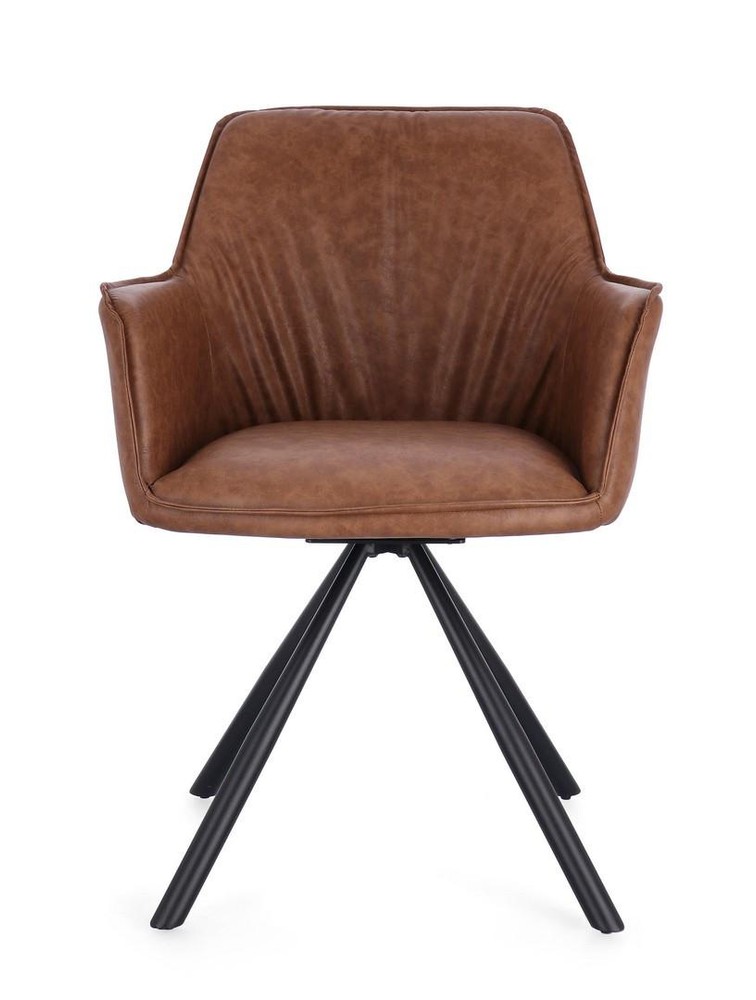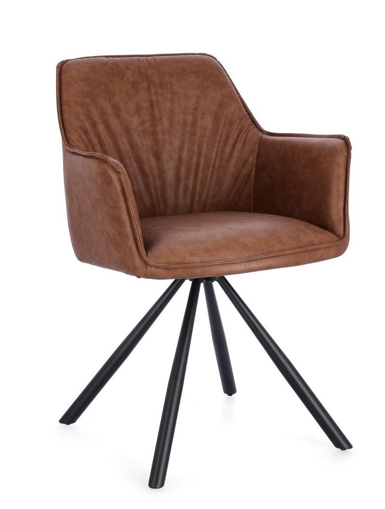 Dieses stilvolle 2er-Set Drehsessel vereint hochwertige Materialien, ergonomischen Komfort und zeitgemäßes Design. Die Sitzfläche aus Sperrholz bildet eine stabile Grundlage, während die Polsterung aus Polyurethanschaum ein angenehmes, komfortables Sitzgefühl garantiert. Der Bezug aus braunem Polyurethan sorgt für eine elegante, warme Optik und ist gleichzeitig pflegeleicht und langlebig – perfekt für den Alltag. Die Arm- und Rückenlehne bieten zusätzlichen Komfort und unterstützen eine entspannte Sitzhaltung. Dank des 180°-Drehmechanismus lassen sich die Sessel flexibel im Raum ausrichten, was sie ideal für Wohnzimmer, Leseecken oder Homeoffice-Bereiche macht. Ein Rückgabemechanismus sorgt dafür, dass die Rückenlehne bei Bedarf sanft zurückgleitet und zusätzlichen Komfort bietet. Die Beine aus Edelstahl mit schwarzem Finish verleihen den Sesseln Stabilität und einen modernen, hochwertigen Look. Das Zusammenspiel von braunem Bezug und dunklen Metallbeinen schafft einen stilvollen Kontrast, der sich harmonisch in unterschiedliche Wohnstile einfügt – von modern über minimalistisch bis hin zu zeitlos elegant. Mit den Maßen von ca. 61 x 84 x 59,5 cm (B x H x T) bietet jeder Sessel eine komfortable Sitzfläche, ohne zu viel Platz einzunehmen. Das Set aus zwei Sesseln ist perfekt, um gemütliche Gesprächsbereiche oder Loungebereiche stilvoll auszustatten.