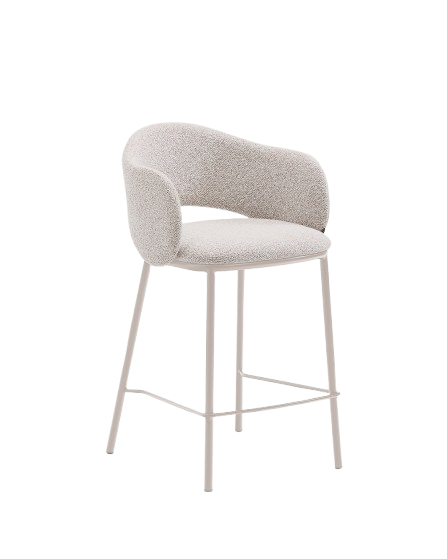 2er Set Hocker Maina aus grober beiger Chenille Stahlbeine mit beigem Finish