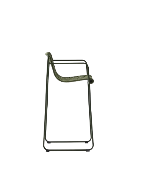 2er Set Stapelbarer Hocker Maurina aus grün Stahl mit grünem Seil