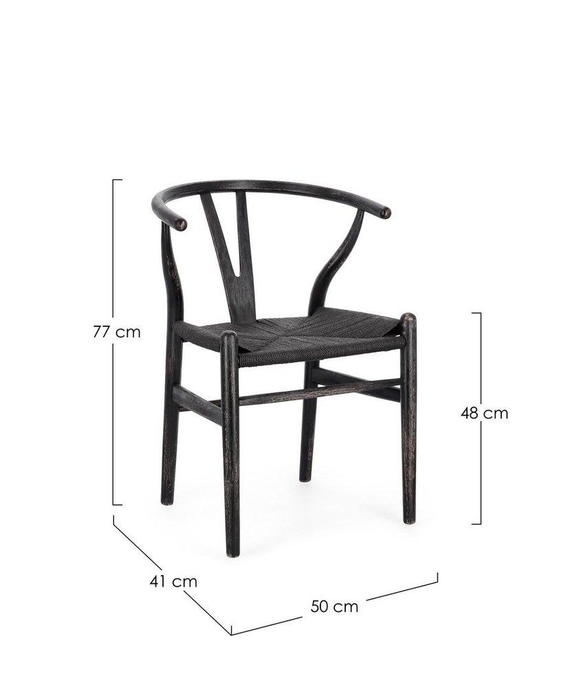 2er Set Stuhl Artemia 49.5 x 77 x 50 cm Buche Papierseil Schwarz