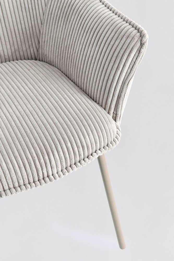 Verleihen Sie Ihrem Wohn- oder Essbereich ein modernes und zugleich gemütliches Flair mit diesem stilvollen 2er-Set Polsterstühle. Die Sitzschalen aus hochwertigem Sperrholz bieten in Kombination mit einer komfortablen Polsterung aus formstabilem Polyurethanschaum angenehmen Sitzkomfort – ideal für lange Abende am Tisch oder entspannte Stunden mit einem Buch. Der strapazierfähige Polyesterbezug in elegantem Grau ist nicht nur pflegeleicht, sondern sorgt mit seiner angesagten Cord-Oberfläche auch für eine warme, textile Haptik und ein wohnliches Ambiente. Die markante Rippenstruktur des Cords setzt dabei dezente Retro-Akzente, die sich harmonisch in moderne wie auch klassische Einrichtungen einfügen. Stabilität und Langlebigkeit garantieren die pulverbeschichteten Stahlbeine mit edlem grauem Finish. Die epoxidharzbasierte Pulverbeschichtung schützt zuverlässig vor Kratzern und Abnutzung – perfekt für den täglichen Gebrauch. Durch das leicht ausgestellte, stabile Gestell wirkt das Design luftig und modern, ohne auf Sicherheit zu verzichten. Mit großzügigen Maßen von ca. 64 x 83 x 66 cm (B x H x T) bieten die Stühle viel Platz zum Sitzen, ohne wuchtig zu wirken. Ideal als Ergänzung für den Essbereich, das Home-Office oder auch als stilvolle Akzentmöbel im Wohnraum.