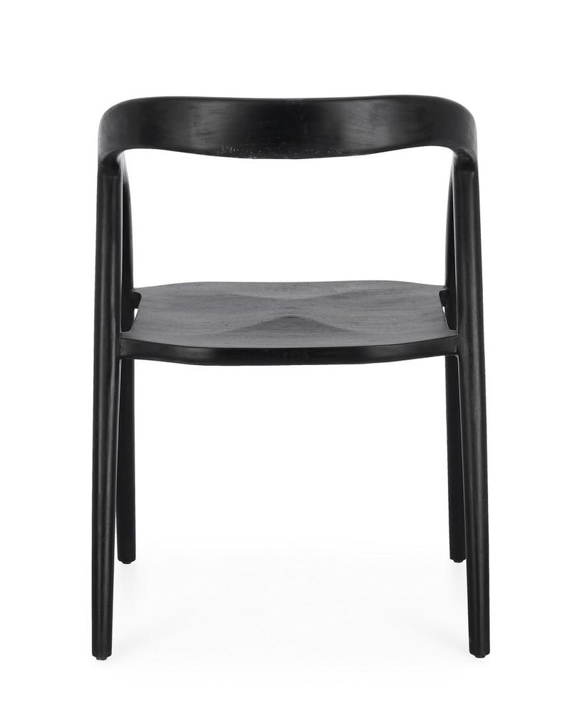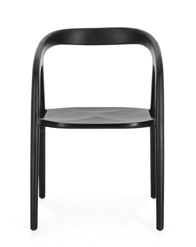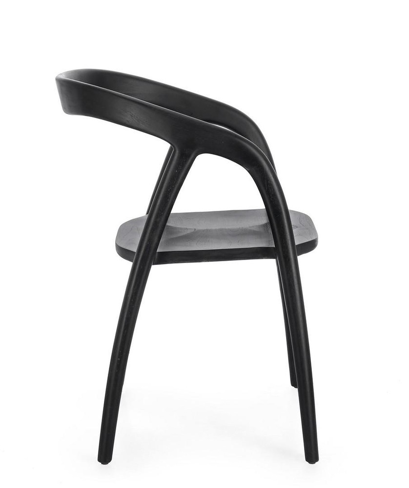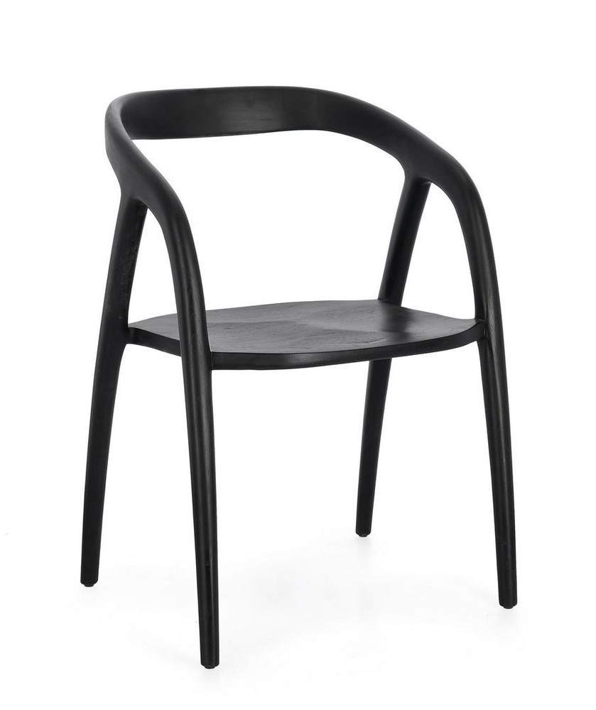 Dieses exklusive Set aus zwei Stühlen vereint natürliche Materialien mit zeitloser Eleganz und durchdachtem Design. Gefertigt aus hochwertigem Teakholz und veredelt mit einem edlen schwarzen Finish, ziehen diese Stühle mit ihrer klaren Linienführung und ihrem minimalistischen Charakter alle Blicke auf sich – perfekt für stilbewusste Wohn- und Essbereiche. Die Lackierung aus Nitrocellulose sorgt für eine feine, matte Oberfläche, die nicht nur die Schönheit des Holzes hervorhebt, sondern auch Schutz vor Abnutzung bietet und gleichzeitig die natürliche Haptik bewahrt. So verbinden sich Ästhetik und Langlebigkeit auf höchstem Niveau. Für ein angenehmes Sitzgefühl sind die Stühle mit einer ergonomisch geformten Rückenlehne sowie komfortablen Armlehnen ausgestattet, die eine entspannte Haltung unterstützen und zum Verweilen einladen. Die Kombination aus robustem Material und durchdachter Ergonomie macht die Stühle nicht nur zum Blickfang, sondern auch zu verlässlichen Begleitern im Alltag. Mit Maßen von ca. 56,5 x 79,5 x 55 cm (B x H x T) bieten die Stühle ausreichend Platz, ohne den Raum zu dominieren. Ob am Esstisch, im Büro oder als Einzelstücke in der Lounge – sie lassen sich vielseitig einsetzen und harmonieren mit unterschiedlichen Einrichtungsstilen, von modern bis klassisch.
