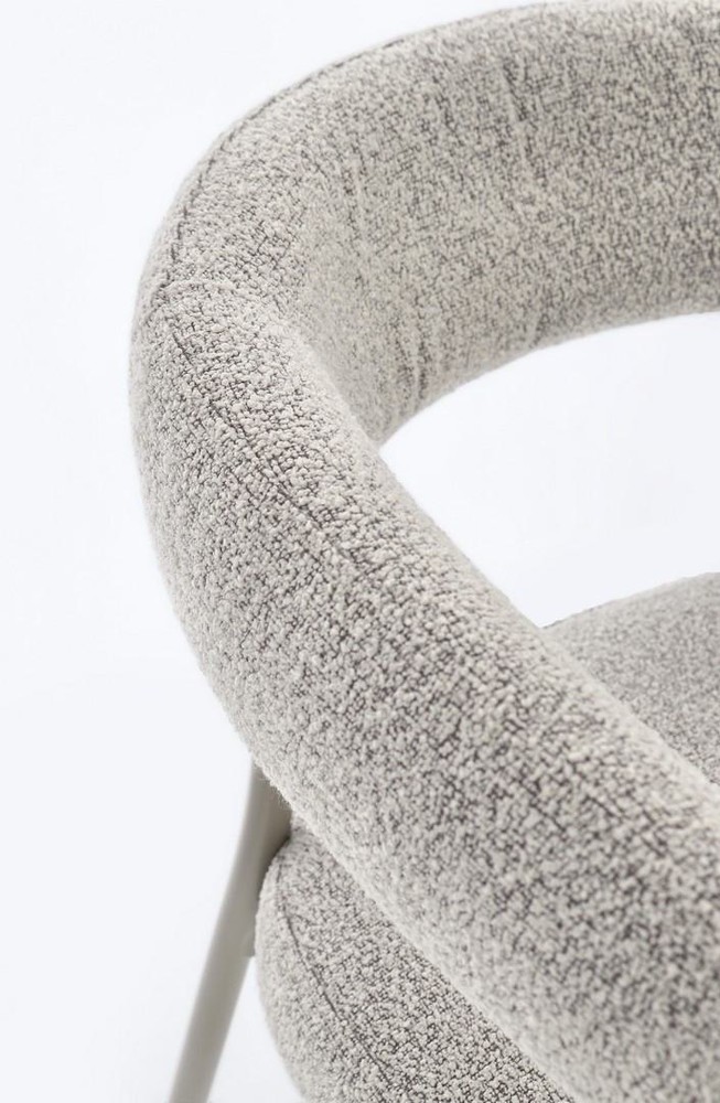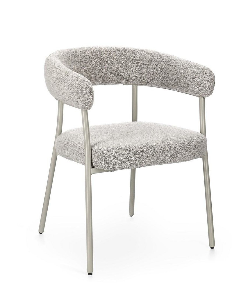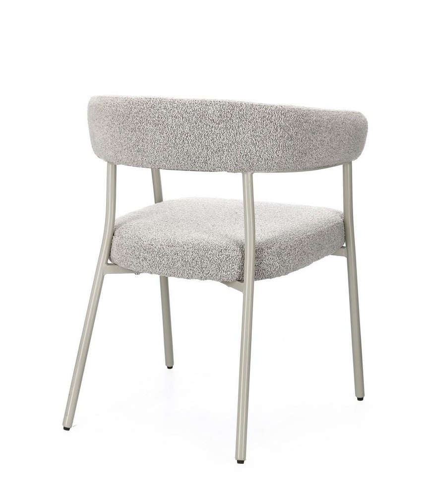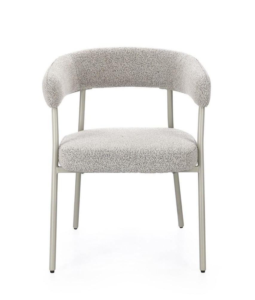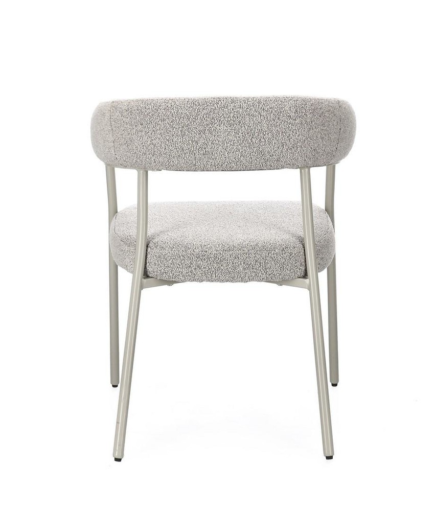 Dieses stilvolle Set aus zwei Stühlen vereint hochwertige Materialien, ergonomisches Design und zeitlose Eleganz – ideal für Esszimmer, Wohnzimmer oder Büro. Die Beine aus Stahl mit grauem Finish und epoxidischer Pulverbeschichtung bieten maximale Stabilität, Langlebigkeit und einen modernen, dezenten Look, der sich harmonisch in unterschiedlichste Einrichtungsstile einfügt. Die Sitzfläche besteht aus Spanplatte mit komfortabler Polyurethanschaum-Polsterung, die ein angenehmes, ergonomisches Sitzgefühl gewährleistet, auch bei längeren Mahlzeiten oder entspannten Stunden am Tisch. Der Bezug aus Polyester in Grau mit Bouclé-Effekt verleiht den Stühlen eine besonders wohnliche, weiche Optik und sorgt gleichzeitig für Strapazierfähigkeit und Pflegeleichtigkeit. Die integrierte Arm- und Rückenlehne unterstützt eine komfortable Sitzposition und rundet das durchdachte Design ab. Mit den Maßen von ca. 56,5 x 75,5 x 59,5 cm (B x H x T) bieten die Stühle großzügigen Komfort, ohne zu viel Platz einzunehmen. Die Kombination aus robustem Stahlgestell, weicher Polsterung und trendigem Bouclé-Bezug macht dieses Set zu einer perfekten Verbindung aus Stil, Komfort und Funktionalität. Ob als Esszimmerstühle, zusätzliche Sitzgelegenheiten im Wohnbereich oder als elegante Ergänzung im Büro – dieses Set setzt optische Akzente und bietet gleichzeitig hohen Sitzkomfort.