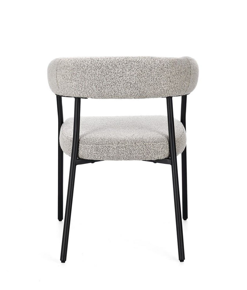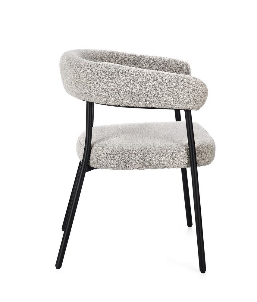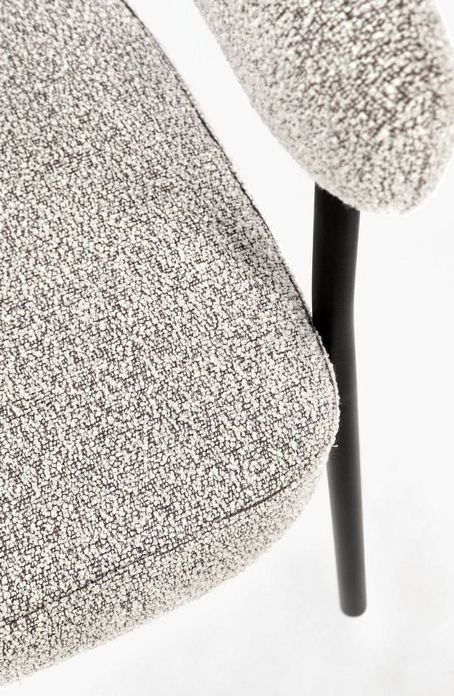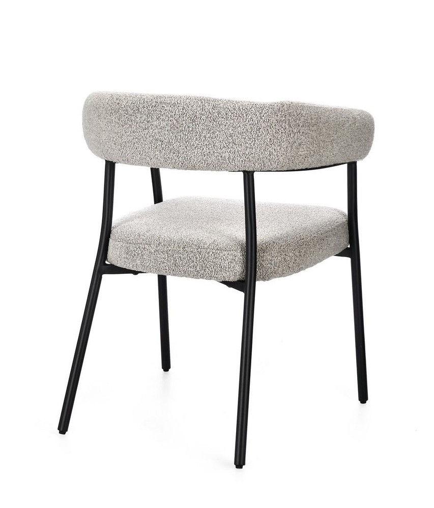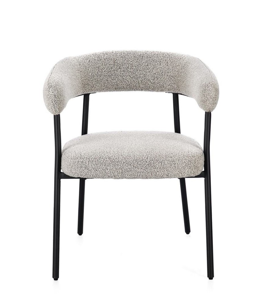 Dieses stilvolle Set aus zwei Stühlen verbindet hochwertige Materialien, durchdachte Ergonomie und modernes Design und ist eine perfekte Ergänzung für Esszimmer, Küche oder Wohnzimmer. Die stabilen Beine aus Stahl mit schwarzem Finish und epoxidischer Pulverbeschichtung garantieren maximale Stabilität und Langlebigkeit, während die klare Linienführung einen modernen, zeitlosen Look schafft. Der Sitz besteht aus Spanplatte mit formstabiler Polyurethanschaum-Polsterung, die ein bequemes und angenehmes Sitzgefühl bietet. Die Arm- und Rückenlehne sorgt zusätzlich für ergonomischen Komfort und macht längeres Sitzen besonders angenehm. Der Bezug aus grauem Polyester mit Bouclé-Effekt verleiht den Stühlen eine warme, moderne Ausstrahlung und einen Hauch von luxuriöser Textur. Die Bouclé-Oberfläche ist nicht nur stilvoll, sondern auch strapazierfähig und pflegeleicht, wodurch sich die Stühle ideal für den täglichen Gebrauch eignen. Mit den Maßen von ca. 56,5 x 75,5 x 59,5 cm (B x H x T) bieten die Stühle großzügigen Sitzkomfort, ohne zu viel Platz einzunehmen. Das Zusammenspiel von robustem Stahlgestell, weicher Polsterung und elegantem Bouclé-Bezug macht diese Stühle zu einem harmonischen, modernen Ensemble, das sowohl Komfort als auch Stil in den Raum bringt. Dieses 2er-Set ist perfekt für alle, die modernes Design mit gemütlichem Sitzkomfort verbinden möchten. Ob als Esszimmerstühle, zusätzliche Sitzgelegenheit oder stilvolles Highlight im Wohnbereich – diese Stühle verbinden Qualität, Design und Funktionalität auf optimale Weise.