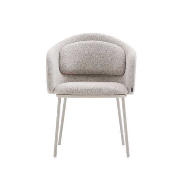 Idaira verbindet den Komfort und das Design der fünfziger Jahre mit einer zeitgenössischen Ästhetik. Mit einem idealen Gleichgewicht zwischen Klassik und Moderne verwandeln diese Stühle jeden Raum in eine Oase der Eleganz und Wärme. Mit grob gewebter Chenille gepolsterter Stuhl in der Farbe Beige.