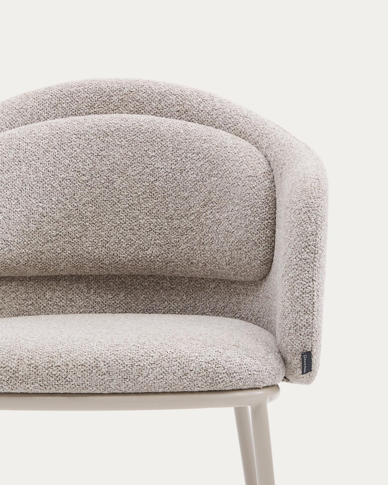 2er Set Stuhl Idaira aus beiger grober Chenille Stahlbeine mit beigem Finish