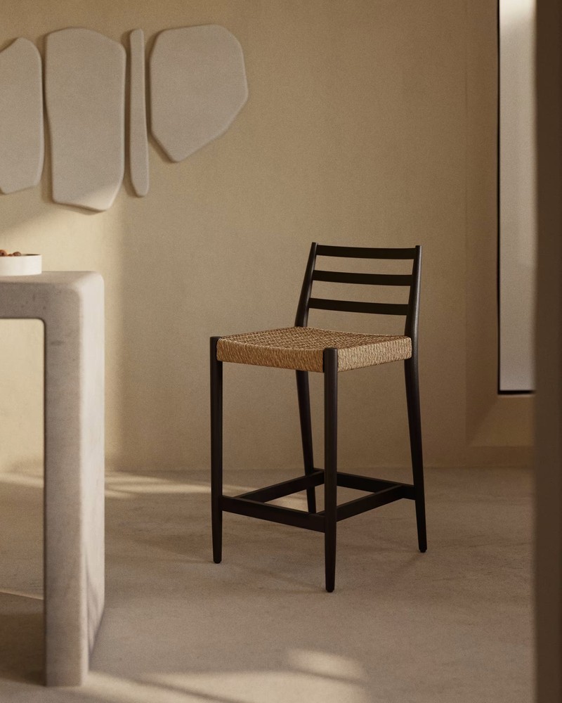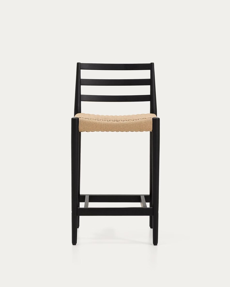 Analy Barhocker Rückenlehne massives Eichenholz mit schwarzem Finishund 2er Set