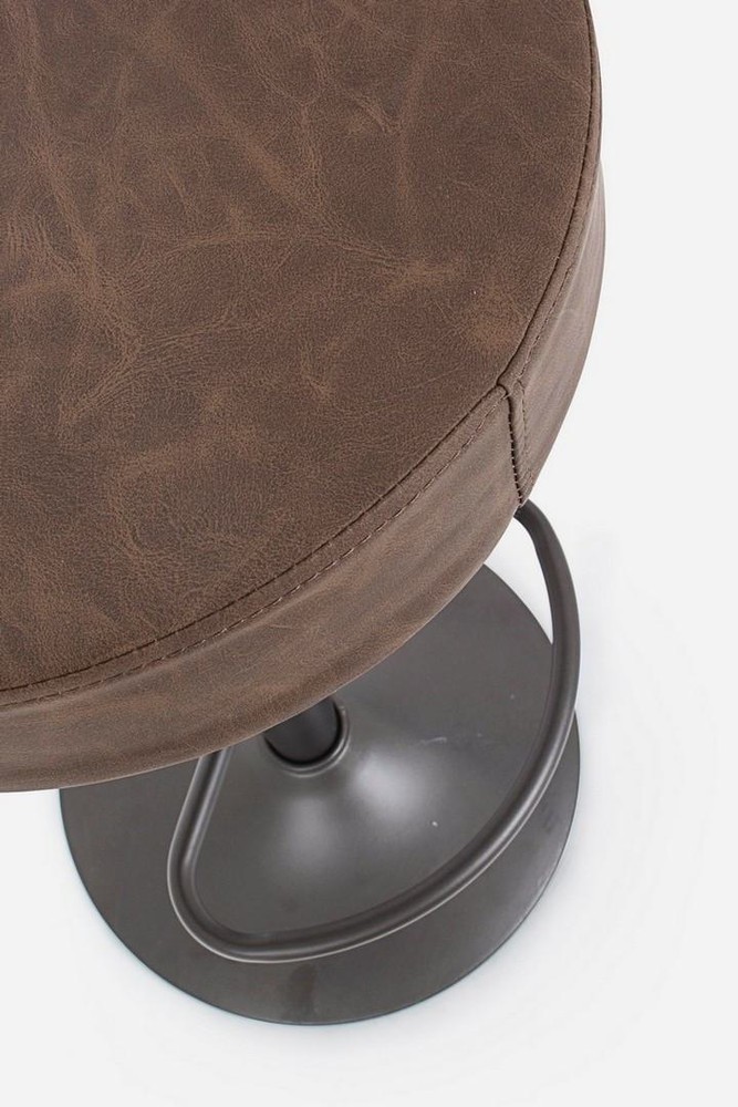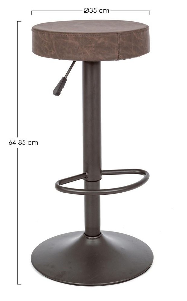 Das Gestell und der mattgraue Fuß dieses Stuhls bestehen aus Stahl und sind mit einer Pulverlackierung aus Polyester versehen. Der Fuß hat einen Durchmesser von 38 cm und sorgt für Stabilität. Die Polsterung besteht aus neuem und recyceltem PU-Schaum mit einer Dichte von 26 kg/m³, während der Bezug aus strapazierfähigem PU gefertigt ist. Die Sitzhöhe ist verstellbar, und die Montage der Beine ist erforderlich.