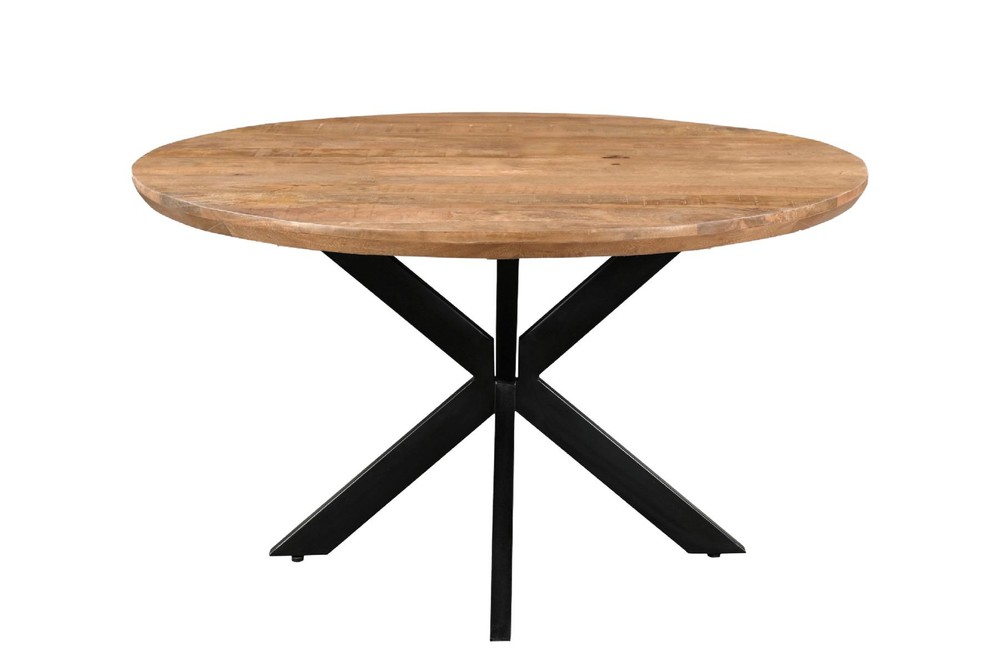 Dieser runde Esstisch aus hochwertigem Mangoholz vereint natürliche Eleganz mit modernem Industriecharme und wird zum stilvollen Mittelpunkt jedes Essbereichs. Die Tischplatte besticht durch ihr natürliches Finish, das die warme, lebendige Maserung des Holzes besonders schön hervorhebt. Durch die runde Form entsteht ein harmonisches, organisches Erscheinungsbild, das einladend wirkt und fließende Übergänge im Raum schafft. Die Tischplatte ruht auf markant gekreuzten Beinen aus robustem Stahl mit schwarzem Finish. Dieses stabile Gestell sorgt nicht nur für herausragende Standfestigkeit, sondern setzt zugleich einen spannenden, modernen Kontrast zum warmen Mangoholz. Die Kombination aus Holz und Metall verleiht dem Tisch einen zeitgemäßen, urbanen Charakter, der sich mühelos in verschiedenste Wohnstile integrieren lässt – von modern über skandinavisch bis hin zu industrial. Mit einem Durchmesser von ca. 150 cm und einer Höhe von ca. 76 cm bietet der Tisch ausreichend Platz für Familie, Freunde und gesellige Runden. Die runde Form sorgt dafür, dass jeder Gast bequem sitzen kann und schafft gleichzeitig eine besonders kommunikative Atmosphäre, da alle Personen einander zugewandt sitzen. Die hochwertige Verarbeitung garantiert Langlebigkeit und Alltagstauglichkeit. Das Mangoholz ist robust, pflegeleicht und widerstandsfähig, während das Stahlgestell ein dauerhaft stabiles Fundament bietet. Die Tischoberfläche eignet sich sowohl für gemeinsame Mahlzeiten als auch für kreative Projekte oder dekorative Arrangements. Ein eleganter, runder Esstisch, der natürliche Materialien, modernes Design und hohe Funktionalität auf beeindruckende Weise vereint. Dieses Möbelstück ist die perfekte Wahl für alle, die ihrem Essbereich ein einladendes, stilvolles und langlebiges Highlight verleihen möchten.