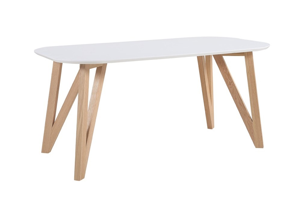 Ein Esszimmertisch in Weiß aus MDF und Eiche