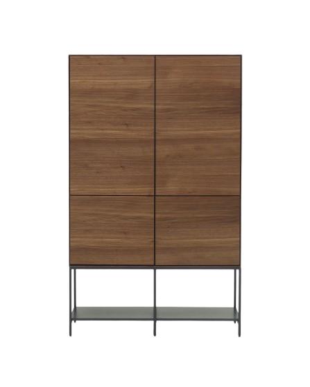 Dieses Highboard ist die perfekte Kombination aus Nussholzfurnier und Stahl. Es verfügt über 4 Türen. Durch das Push- To- Open- Mechanismus und Scharnieren für sanfte Schließung, vereint es Funktionalität und Design. Das Möbelstück verleiht Ihrem Zimmer einen besonderen Stil. Die geräumigen Fächer sind äußerst praktisch zum Verstauen von diversen Dingen. Das Möbelstück lässt sich leicht sauber halten. Die robuste Konstruktion sorgt für Stabilität und Langlebigkeit. Dieses Möbelstück stellt die perfekte Ergänzung für jede Einrichtung dar.