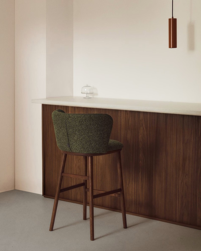 Der Barhocker ist nicht höhenverstellbar, nicht stapelbar und verfügt über eine fest montierte Polsterung mit nicht abnehmbarem Bezug. Er ist ausschließlich für den Innenbereich konzipiert und nicht für den Einsatz im Außenbereich geeignet.