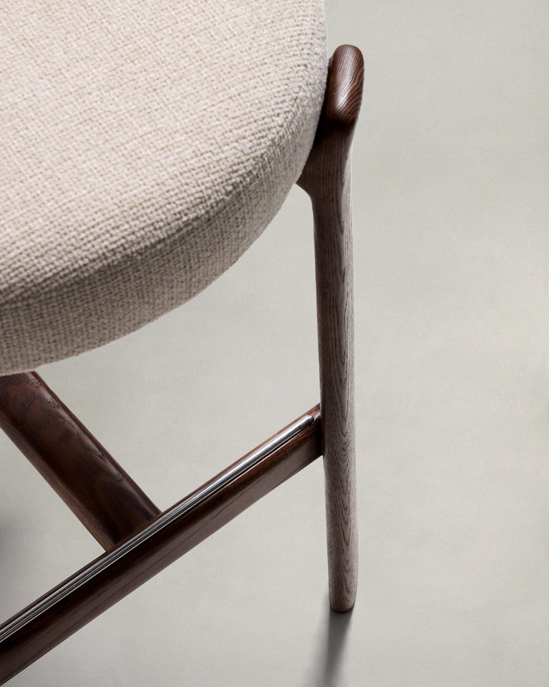 Dieser formschöne Hocker vereint anspruchsvolles Design mit hohem Sitzkomfort und sorgfältig ausgewählten Materialien. Er wurde geschaffen für Menschen, die Qualität und Ästhetik gleichermaßen schätzen. Mit seiner angenehm weichen Polsterung, der edlen Stoffoberfläche und dem fein gearbeiteten Holzgestell bringt er Wärme, Natürlichkeit und Eleganz in jeden Raum – ob in der Küche, am Bartresen oder im stilvollen Wohnambiente. Die Sitzfläche und Rückenlehne sind mit einem Bezug aus hochwertiger Chenille in sanftem Beige versehen. Chenille ist bekannt für seine besonders weiche, samtartige Haptik und seine elegante Struktur, die je nach Lichteinfall einen dezenten Glanz zeigt. Die helle Farbgebung sorgt für ein frisches, freundliches Gesamtbild und lässt sich hervorragend mit unterschiedlichen Stilrichtungen kombinieren – von skandinavisch und modern bis hin zu klassisch und gemütlich. Für ein besonders angenehmes Sitzgefühl sorgt die Polsterung aus formstabilem Polyurethanschaum, die auch bei häufiger Nutzung ihre Form behält. Sie bietet die ideale Balance zwischen Komfort und Unterstützung – perfekt, um länger bequem zu sitzen, sei es beim Frühstück, beim geselligen Abend oder beim Arbeiten an der Kücheninsel. Das Gestell aus massivem Eschenholz verleiht dem Hocker nicht nur Stabilität, sondern auch eine natürliche, warme Ausstrahlung. Das walnussholzfarbene Finish hebt die feine Maserung des Holzes hervor und sorgt für eine edle, harmonische Optik. Eine integrierte Fußstütze ergänzt das Design funktional und macht das Sitzen noch angenehmer – ideal für eine entspannte Haltung und zusätzlichen Komfort. Mit seinen harmonischen Maßen von ca. 53 x 100 x 52 cm (Breite x Höhe x Tiefe) überzeugt der Hocker durch eine ausgewogene Form, die sich mühelos in verschiedene Wohnkonzepte integrieren lässt. Er kann einzeln als stilvoller Akzent oder in Kombination mit weiteren Hockern als Teil einer geschmackvollen Sitzgruppe eingesetzt werden.