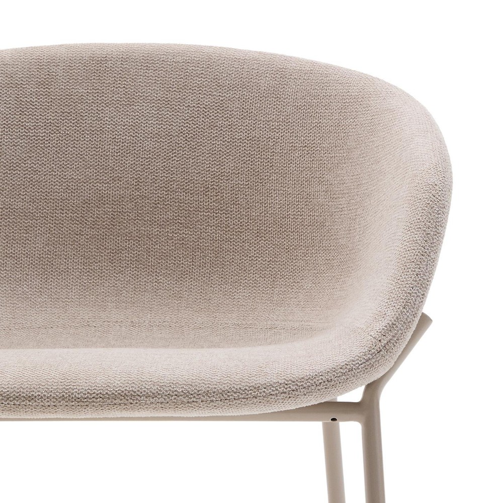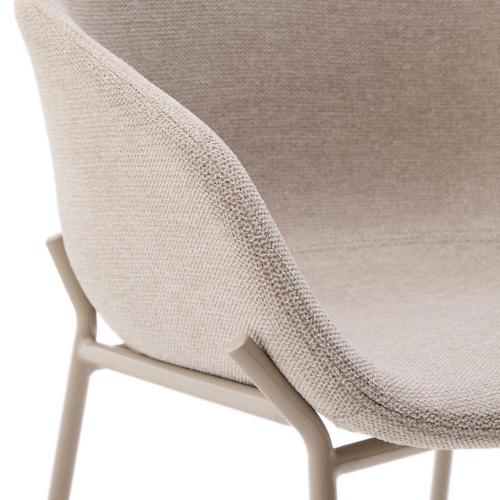 Hocker Yvette aus beigefarbener Chenille und Stahlbeinen 2er Set