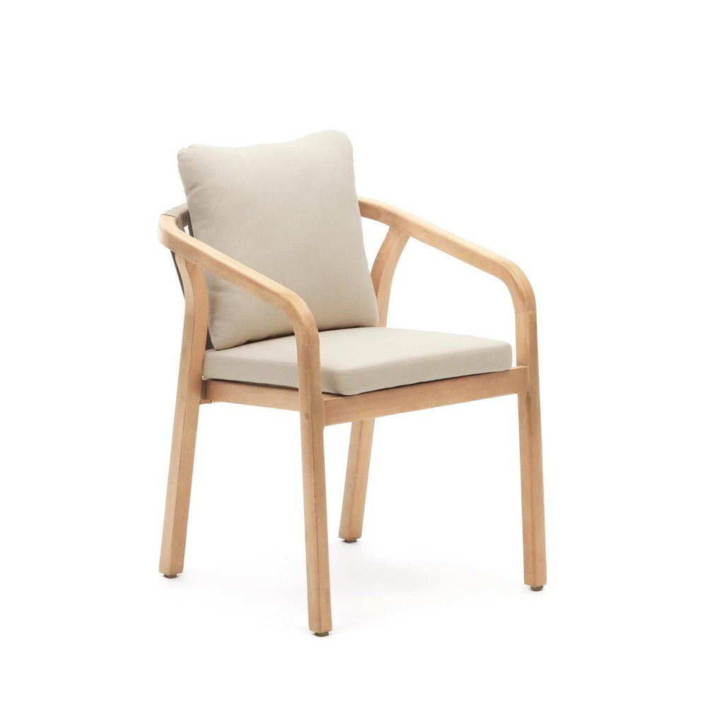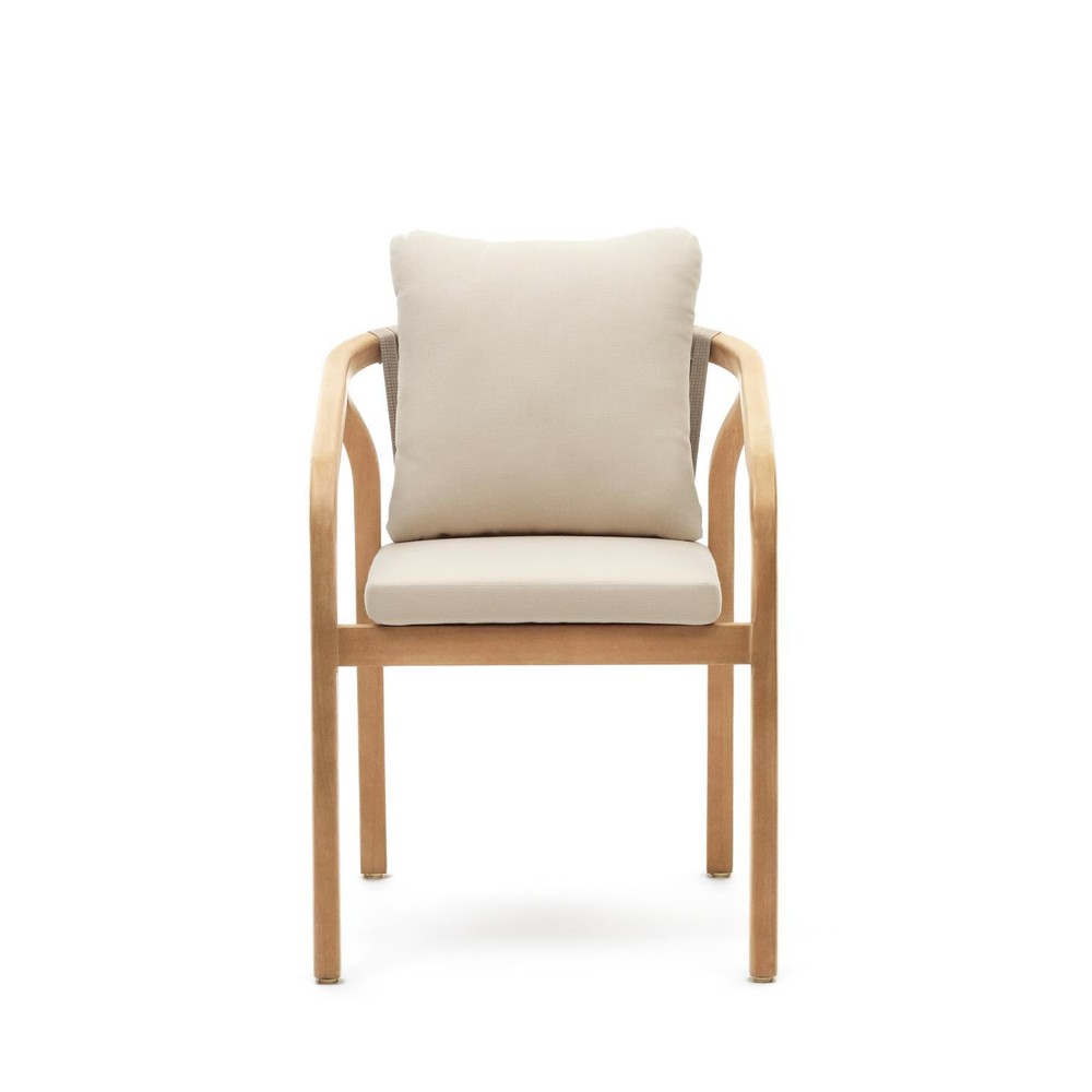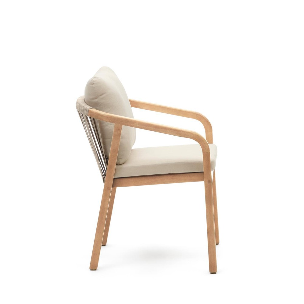 Malaret stapelbarer Stuhl aus massivem Eukalyptusholz und Seil in Beige 2er Set