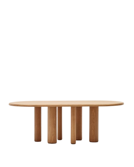 Dieser ovale Tisch ist aufgrund seiner natürlich verarbeiteten Materialien ein Einzelstück. Er verfügt über eigene Farbschattierungen und Oberflächen. Zudem verfügt der Tisch über sechs Beine mit verschiedenen Durchmessern, die jeweils mit einem PU- Lack lackiert sind und Kunststoffpolster an den Füßen bieten. Zudem macht dieser Tisch einen hervorragenden Eindruck durch sein schlichtes und natürliches Design. Durch die abgerundete Form passt es sich jedem Ambiente und Stil an.