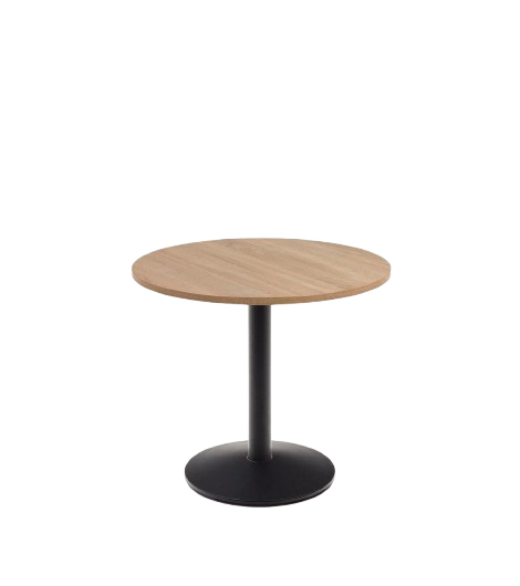 Robust und standfest.  Aufgrund der Materialien überzeugt der Tisch mit Langlebigkeit. Die naturfarbene runde Tischplatte besteht aus einer 19 mm starken Melaminplatte. In Kombination mit dem runden Standfuß, der aus Eisen mit mattschwarzer Sprühlackierung besteht, verleihen Sie Ihrem Innenraum einen natürlichen Look. Der Tisch ist sehr pflegeleicht, da er bei Bedarf einfach mit einem feuchten Tuch und mildem Reinigungsmittel gereinigt werden kann. Dieser Tisch verleiht Ihrem Zuhause eine elegante und natürliche Note. Zudem bietet der Tisch Platz für bis zu vier Personen. .