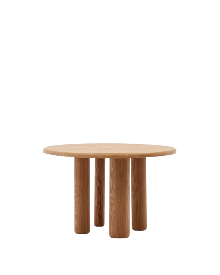 Dieser runde Tisch ist aufgrund seiner natürlich verarbeiteten Materialien ein Einzelstück. Er verfügt über eigene Farbschattierungen, Oberflächen und Eschenfurnier mit natürlichem Finish. Zudem verfügt der Tisch über vier Beine mit verschiedenen Durchmessern, die jeweils mit einem PU- Lack lackiert sind und Kunststoffpolster an den Füßen bieten. Dieser Tisch macht einen hervorragenden Eindruck durch sein schlichtes und natürliches Design. Durch die abgerundete Form passt es sich jedem Ambiente und Stil an. Zudem bietet der Tisch Platz für bis zu vier Personen an.