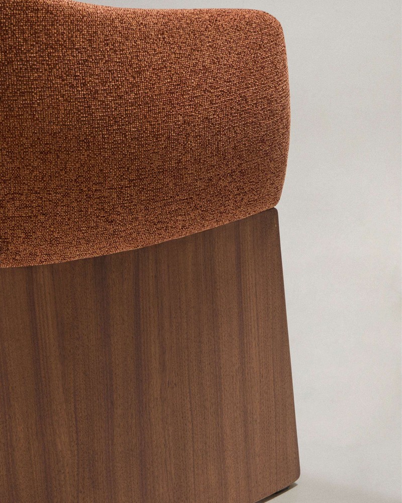 Stuhl Bosca 58 x 77 x 53 cm Chenille Walnussfurnier Terrakotta Braun