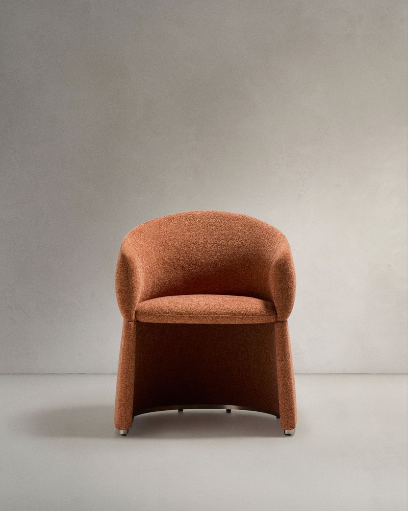 Dieser elegante Stuhl vereint modernes Design, nachhaltige Materialien und höchsten Sitzkomfort zu einem Möbelstück, das Wärme und Charakter in jeden Raum bringt. Der Bezug besteht aus einem fein strukturierten Chenillestoff in edlem Terrakotta-Ton, der nicht nur durch seine samtig-weiche Haptik, sondern auch durch seine ausdrucksstarke, natürliche Farbgebung überzeugt. Gefertigt aus 100 % recyceltem Polyester und mit einer wasserabweisenden Behandlung versehen, ist der Stoff pflegeleicht, strapazierfähig und zugleich ein Statement für umweltbewusstes Wohnen. im Inneren sorgt eine durchdachte Polsterung für angenehmen Sitzkomfort mit mittlerer Festigkeit. Der Rahmen aus elastischen Gurtbändern und Federn in Kombination mit hochwertigem 55 kg/m³-Injektionsschaum bietet optimale Unterstützung und Formstabilität – selbst bei täglicher Nutzung. So bleibt der Sitz dauerhaft bequem, ohne seine Eleganz zu verlieren. Ein umlaufender metallischer Rahmen schützt den Stoffbezug vor Abnutzung und setzt zugleich einen modernen, feinen Akzent, der den Stuhl optisch abrundet. Die integrierten Armlehnen und die ergonomisch geformte Rückenlehne sorgen für eine bequeme Sitzposition und laden zum längeren Verweilen ein – ideal für Esszimmer, Lounge-Bereich oder Homeoffice. Praktisch und funktional: Die Beinschützer verhindern Kratzer und Beschädigungen am Boden und ermöglichen ein leichtes, geräuschloses Verschieben. Mit seiner warmen Terrakottafarbe, der feinen Chenillestruktur und der Kombination aus Komfort, Design und Nachhaltigkeit fügt sich dieser Stuhl mühelos in verschiedenste Einrichtungsstile ein – von modern-minimalistisch über mediterran bis hin zu elegant-natürlich. Er bringt Farbe, Stil und Behaglichkeit in Ihr Zuhause und überzeugt durch Qualität bis ins kleinste Detail.