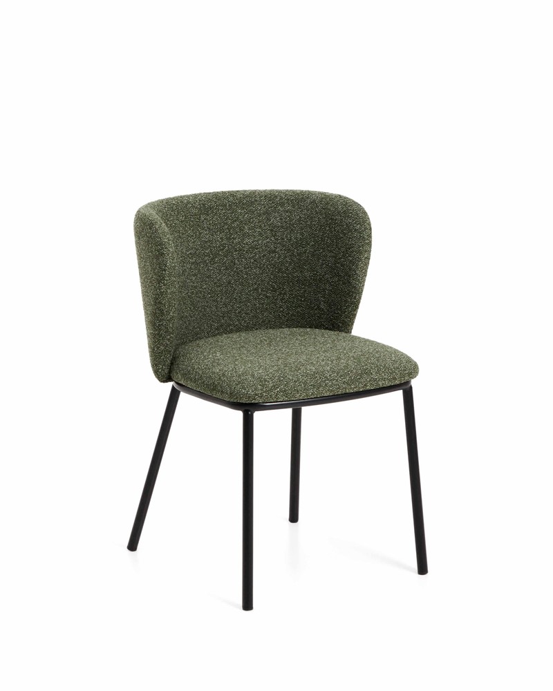 Stuhl Ciselia in dicker, dunkelgrüner Chenille 2er Set