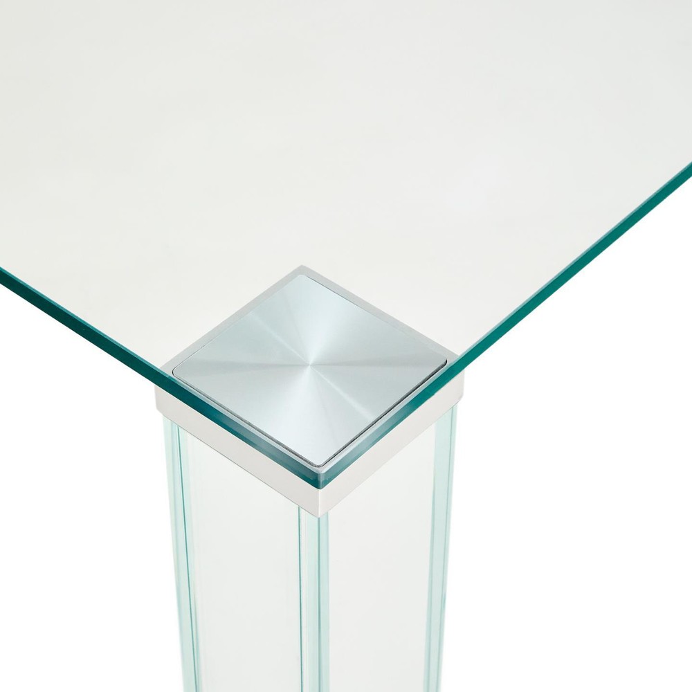 Verleihen Sie Ihrem Essbereich einen eleganten Mittelpunkt mit diesem Esstisch. Sein robustes Gestell sorgt für Stabilität, Langlebigkeit und eine moderne Optik, die sich harmonisch in jede Umgebung einfügt. Die Tischplatte aus hochwertigem, gehärtetem Glas besticht durch sein modernes Design. Dieser Tisch bringt zu dem, durch sein praktisches Design, viel Beinfreiheit mit sich.