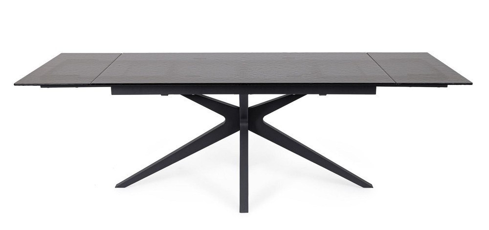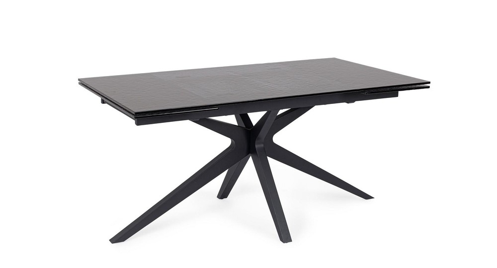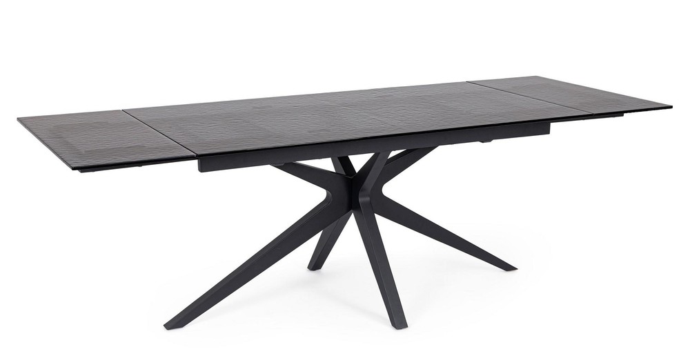 Tisch Aira 160-240 x 90 x 76 cm Stahl Glas Schwarz