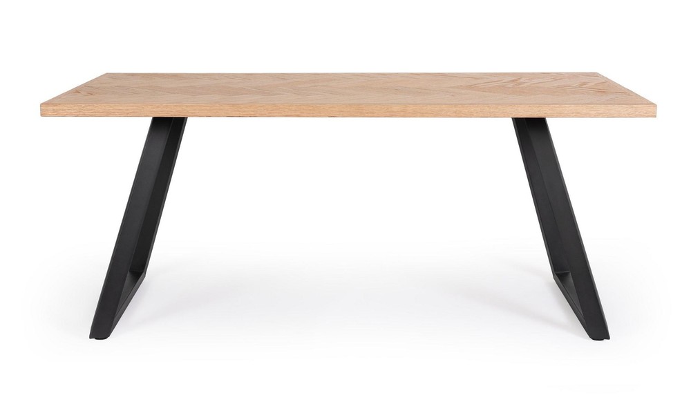 Dieser Esstisch verbindet zeitgemäßes Design mit durchdachter Funktionalität und langlebigen Materialien. Mit seiner klaren Linienführung, der natürlichen Holzoptik und dem kontraststarken Metallgestell ist er ein vielseitig einsetzbares Möbelstück, das sich nahtlos in verschiedenste Wohnkonzepte einfügt – ob im Esszimmer, der offenen Wohnküche oder im stilvollen Loft. Die Tischplatte besteht aus hochwertigem MDF mit einem fein gearbeiteten Holzfurnier. Dieses verleiht dem Tisch die warme, authentische Ausstrahlung echten Holzes und sorgt gleichzeitig für eine besonders glatte, strapazierfähige Oberfläche. Die Maserung des Furniers bringt Tiefe und Charakter in den Raum, ohne dabei aufdringlich zu wirken. Dank der widerstandsfähigen Versiegelung lässt sich die Platte leicht reinigen und ist bestens für den täglichen Gebrauch geeignet. Getragen wird die großzügige Tischplatte von einem stabilen Untergestell aus Stahl. Die Beine sind mit einer epossidischen Pulverbeschichtung in elegantem Schwarz versehen – ein Finish, das nicht nur modern und stilvoll wirkt, sondern auch effektiv vor Kratzern, Korrosion und Abnutzung schützt. Die klare, geometrische Form der Beine unterstreicht den zeitgemäßen Look und bringt eine angenehme visuelle Leichtigkeit in das Design. Ein praktisches Detail sind die verstellbaren Füße an der Unterseite der Tischbeine. Sie sorgen für einen sicheren Stand auch auf leicht unebenen Böden und ermöglichen es, den Tisch individuell auszurichten – ein echtes Plus im Alltag. Mit seinen Maßen von etwa 180 Zentimetern in der Länge, 90 Zentimetern in der Breite und einer Höhe von rund 76 Zentimetern bietet der Tisch ausreichend Platz für bis zu sechs Personen. Er eignet sich ideal für gesellige Abende, ausgedehnte Mahlzeiten oder kreative Projekte und bleibt dabei stets stilvoll im Hintergrund.