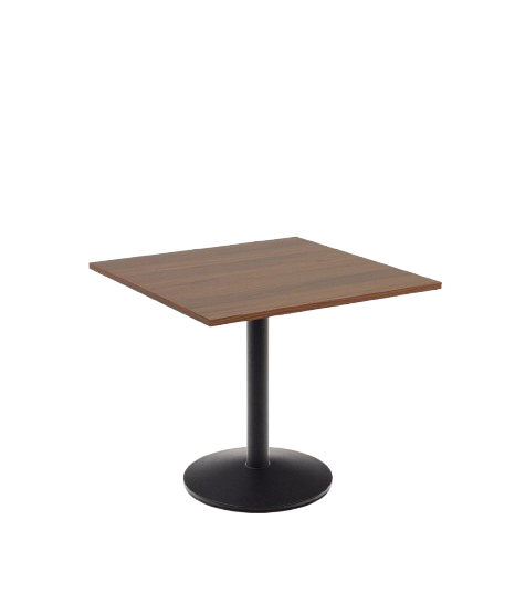 Robust und standfest.  Aufgrund der Materialien überzeugt der Tisch mit Langlebigkeit. Die Tischplatte ist aus Nussbaumfinish und einer 19 mm starken Melaminplatte . In Kombination mit dem runden Standfuß, der aus Eisen mit mattschwarzer Sprühlackierung besteht, verleihen Sie Ihrem Innenraum einen natürlichen Look. Der Tisch ist sehr pflegeleicht, da er bei Bedarf einfach mit einem feuchten Tuch und mildem Reinigungsmittel gereinigt werden kann. Dieser Tisch verleiht Ihrem Zuhause eine elegante und natürliche Note. Zudem bietet der Tisch Platz für bis zu 4 Personen.