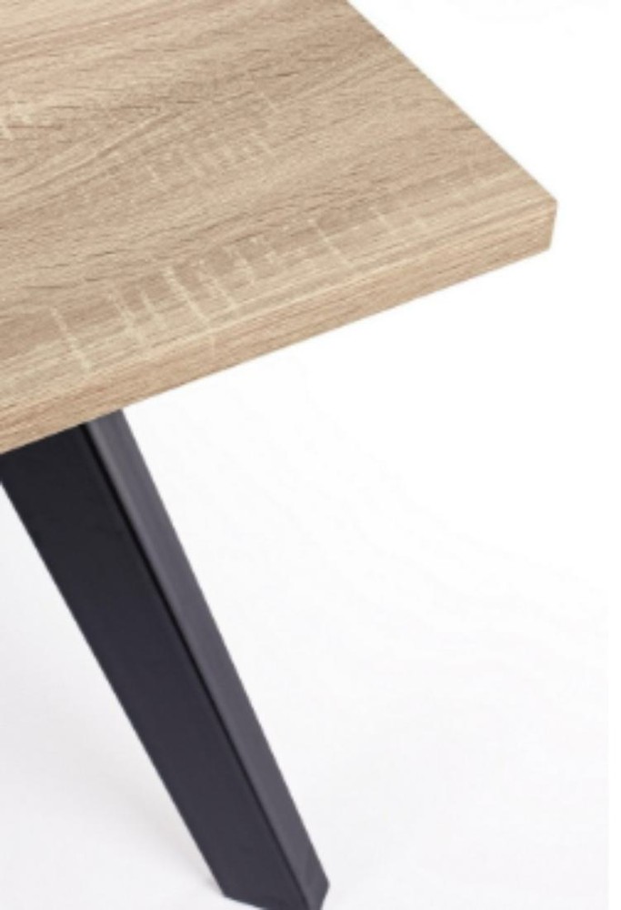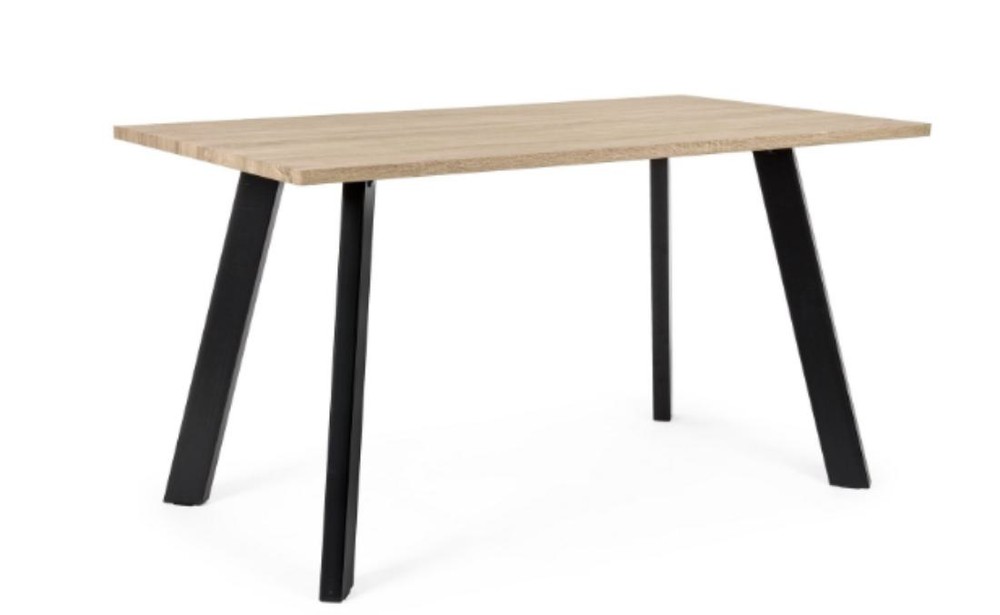 Der Tisch vereint modernes Design mit praktischer Funktionalität und natürlicher Wärme. Er ist die perfekte Lösung für Esszimmer, Arbeitsbereiche oder Wohnzimmer, in denen Stil und Alltagstauglichkeit Hand in Hand gehen. Die Tischplatte aus MDF ist mit einer melaminischen Folie in Holz-Optik versehen, die die warme Ausstrahlung echten Holzes vermittelt, ohne empfindlich zu sein.