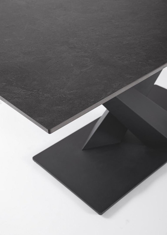 Grafische Klarheit trifft edle Oberfläche. Stellen Sie sich einen Ort vor, an dem Natürlichkeit und Wärme Zuhause sind. Er verbindet präzises Handwerk mit langlebigen Materialien, modernes Design mit klarer Formensprache. Das klare, geometrische Gestell verleiht dem Tisch moderne Linienführung. Perfekt vereinte Ästhetik und Praktikabilität. Ob in der Küche, im Essbereich oder im Wohnbereich, dieser Tisch wird schnell zum Mittelpunkt jeder geselligen Runde. Ein Tisch, der mehr ist als nur ein Möbelstück. Die Tischplatte besteht aus hochwertigem Feinsteinzeug, das optisch an edlen Marmor erinnert, mit feiner Struktur und natürlicher Eleganz. Feinsteinzeug ist hart, unempfindlich gegen Kratzer und Hitze, und damit ideal für den täglichen Gebrauch.