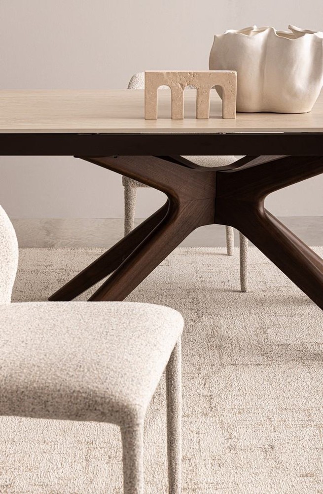 Modern und wunderschön. Stellen Sie sich einen Ort vor, an dem Natürlichkeit und Wärme Zuhause sind. Dieser elegante Tisch vereint modernes Design, natürliche Materialien und praktische Funktionalität. Der harmonische Farbton des Holzes schenkt Ihrem Esszimmer eine einladende Atmosphäre. Perfekt vereinte Ästhetik und Praktikabilität. Die robusten, höhenverstellbaren Füße erlauben es Ihnen, den Tisch millimetergenau auszurichten, egal auf welchem Boden Sie ihn platzieren.