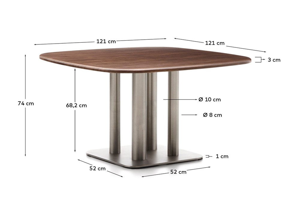 Tisch Melvar 121 x 121 x 74 cm Stahl Walnussfurnier Eukalyptusholz Braun Silber