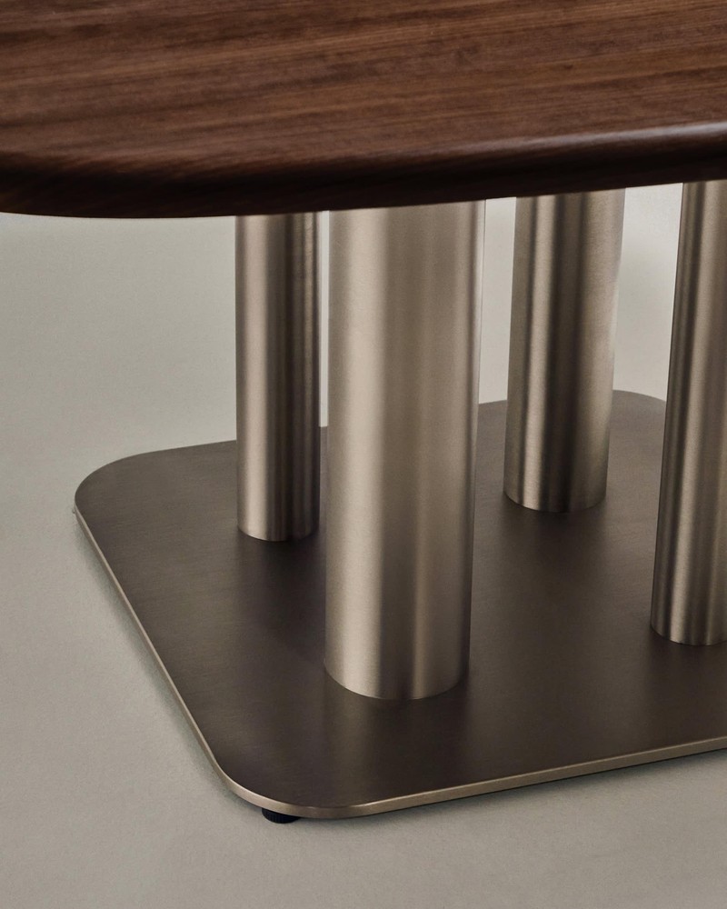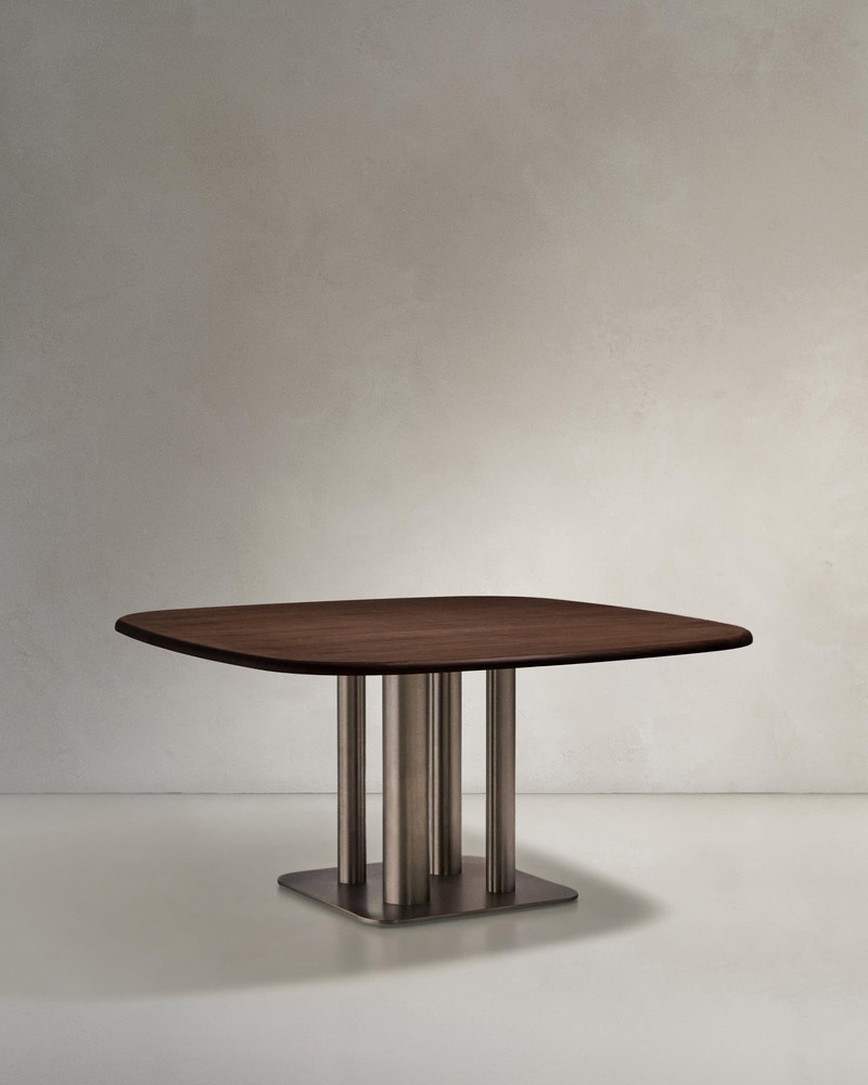 Tisch Melvar 150 x 150 x 74 cm Stahl Walnussfurnier Eukalyptusholz Braun Silber