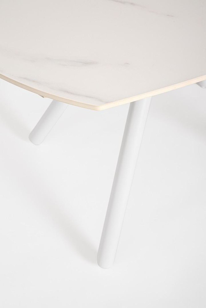 Leichtes Design. Große Wirkung. Stellen Sie sich einen Ort vor, an dem Natürlichkeit und Wärme Zuhause sind. Er verbindet präzises Handwerk mit langlebigen Materialien, modernes Design mit klarer Formensprache. Das klare, geradlinige Design sorgt für eine moderne und zugleich zeitlose Ästhetik, die sich harmonisch in jedes Ambiente einfügt. Perfekt vereinte Ästhetik und Praktikabilität. Ob in der Küche, im Essbereich oder im Wohnbereich, dieser Tisch wird schnell zum Mittelpunkt jeder geselligen Runde. Ein Tisch, der mehr ist als nur ein Möbelstück. Die Tischplatte besteht aus hochwertigem Feinsteinzeug, das optisch an edlen Marmor erinnert, mit feiner Struktur und natürlicher Eleganz. Feinsteinzeug ist hart, unempfindlich gegen Kratzer und Hitze, und damit ideal für den täglichen Gebrauch.