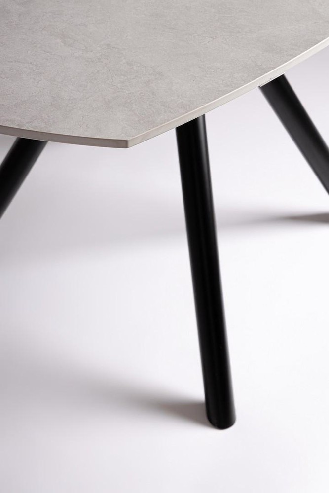 Leichtes Design. Große Wirkung. Stellen Sie sich einen Ort vor, an dem Natürlichkeit und Wärme Zuhause sind. Er verbindet präzises Handwerk mit langlebigen Materialien, modernes Design mit klarer Formensprache. Das klare, geradlinige Design sorgt für eine moderne und zugleich zeitlose Ästhetik, die sich harmonisch in jedes Ambiente einfügt. Perfekt vereinte Ästhetik und Praktikabilität. Ob in der Küche, im Essbereich oder im Wohnbereich, dieser Tisch wird schnell zum Mittelpunkt jeder geselligen Runde. Ein Tisch, der mehr ist als nur ein Möbelstück. Die Tischplatte besteht aus hochwertigem Feinsteinzeug, das optisch an edlen Marmor erinnert, mit feiner Struktur und natürlicher Eleganz. Feinsteinzeug ist hart, unempfindlich gegen Kratzer und Hitze, und damit ideal für den täglichen Gebrauch.