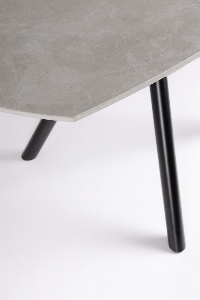 Leichtes Design. Große Wirkung. Stellen Sie sich einen Ort vor, an dem Natürlichkeit und Wärme Zuhause sind. Er verbindet präzises Handwerk mit langlebigen Materialien, modernes Design mit klarer Formensprache. Das klare, geradlinige Design sorgt für eine moderne und zugleich zeitlose Ästhetik, die sich harmonisch in jedes Ambiente einfügt. Perfekt vereinte Ästhetik und Praktikabilität. Ob in der Küche, im Essbereich oder im Wohnbereich, dieser Tisch wird schnell zum Mittelpunkt jeder geselligen Runde. Ein Tisch, der mehr ist als nur ein Möbelstück. Die Tischplatte besteht aus hochwertigem Feinsteinzeug, das optisch an edlen Marmor erinnert, mit feiner Struktur und natürlicher Eleganz. Feinsteinzeug ist hart, unempfindlich gegen Kratzer und Hitze, und damit ideal für den täglichen Gebrauch.