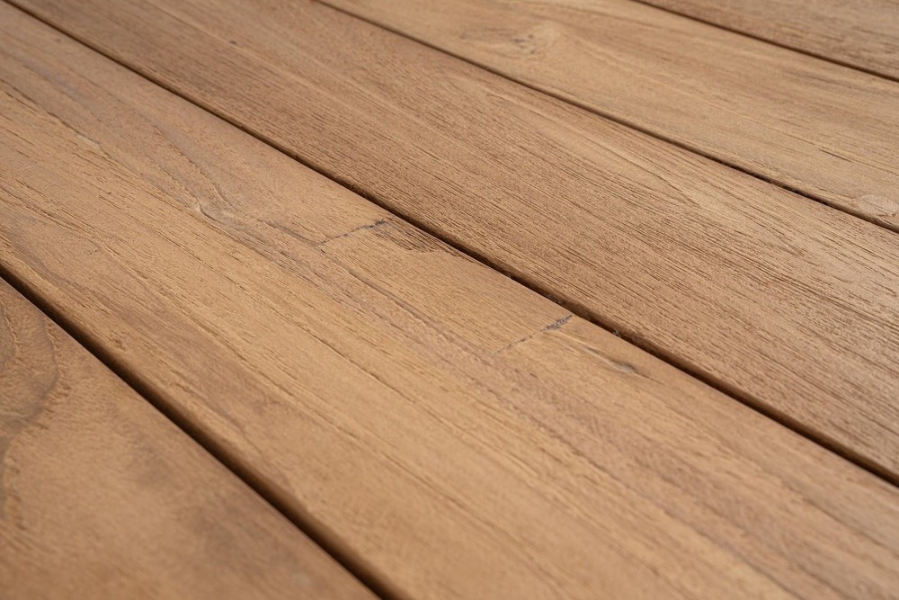 Stellen Sie sich einen Ort vor, an dem Natürlichkeit und Wärme Zuhause sind. Dieser elegante Tisch vereint modernes Design, natürliche Materialien und praktische Funktionalität. Die rustikale Oberfläche ist lebendig und authentisch, so, als ob Sie gerade ein Stück Tropenwald zu sich nach Hause geholt hätten. Dieser Esstisch aus recyceltem Teakholz erzählt mit jedem Ast und jeder Jahresringe seine ganz eigene Geschichte.