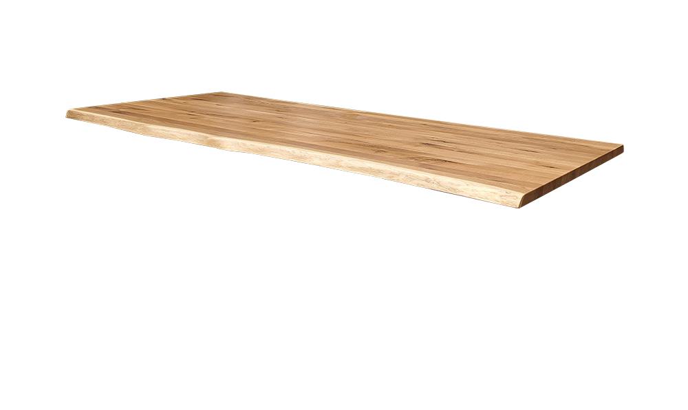 Verleihen Sie Ihrem Zuhause einen Hauch von Natur und Eleganz mit dieser einzigartigen Tischplatte aus hochwertiger Wildeiche. Jedes Stück wird in sorgfältiger Handarbeit gefertigt und besticht durch seine authentische natürliche Baumkante, die den organischen Charakter des Holzes bewahrt.