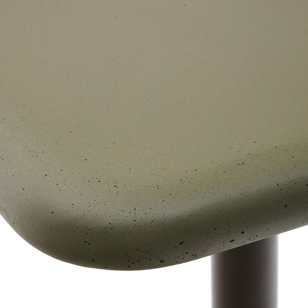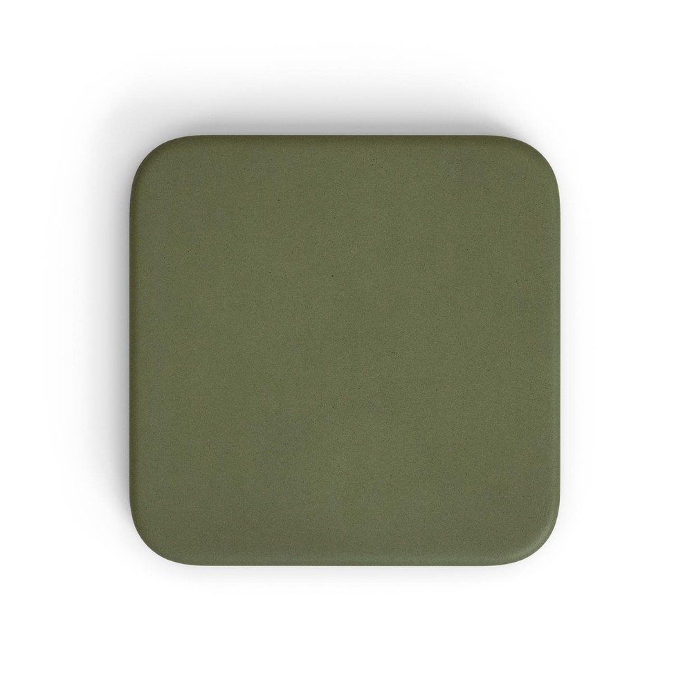 Die Tischplatte in tiefem Olivgrün verbindet rauen Beton-Charme mit klarer, moderner Formensprache. Die sanft gerundeten Ecken verleihen ihr eine freundliche, zeitgemäße Silhouette. Jede Platte trägt dezente Unterschiede in Farbton, Textur und Porosität. Kleine Sprenkel, feine Nuancen und leicht variierende Oberflächen machen jedes Stück zu einem Einzelstück mit Persönlichkeit.