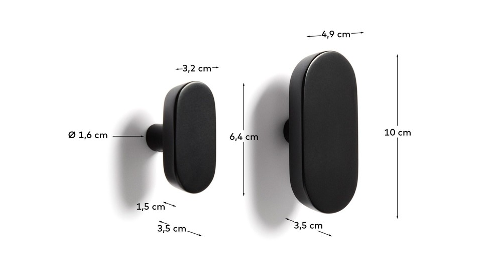 2er Set Kleiderhaken Arely 6,5/10 x 3,5 x 3,3 cm Buche Stahl Schwarz