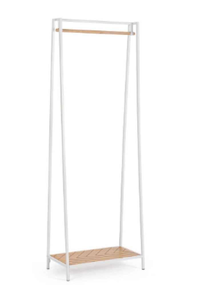 Garderobe Haldor 63 x 180 x 34 cm Stahl MDF Gummibaum Weiß Natur
