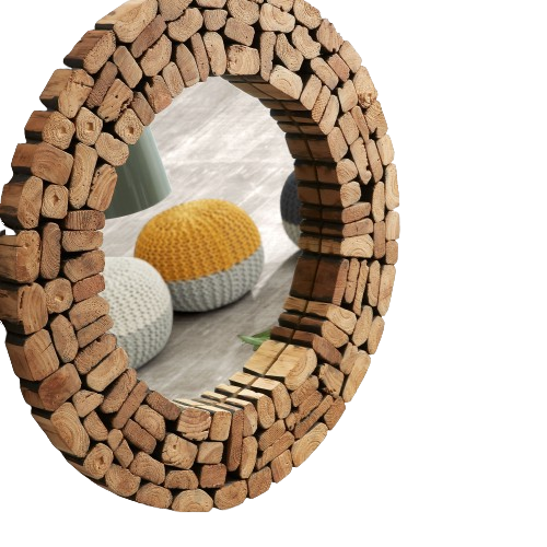 Sie wollen noch einen prüfenden Blick in den Spiegel werfen bevor Sie das Haus verlassen ? Dann ist dieser runde Wandspiegel mit einem Durchmesser von 80 cm das Richtige für Sie. Der Rahmen ist aus Teakholz gefertigt. Dieser Spiegel präsentiert sich wunderbar in jedem Raum, unabhängig vom Einrichtungsstil.