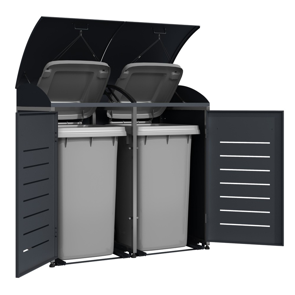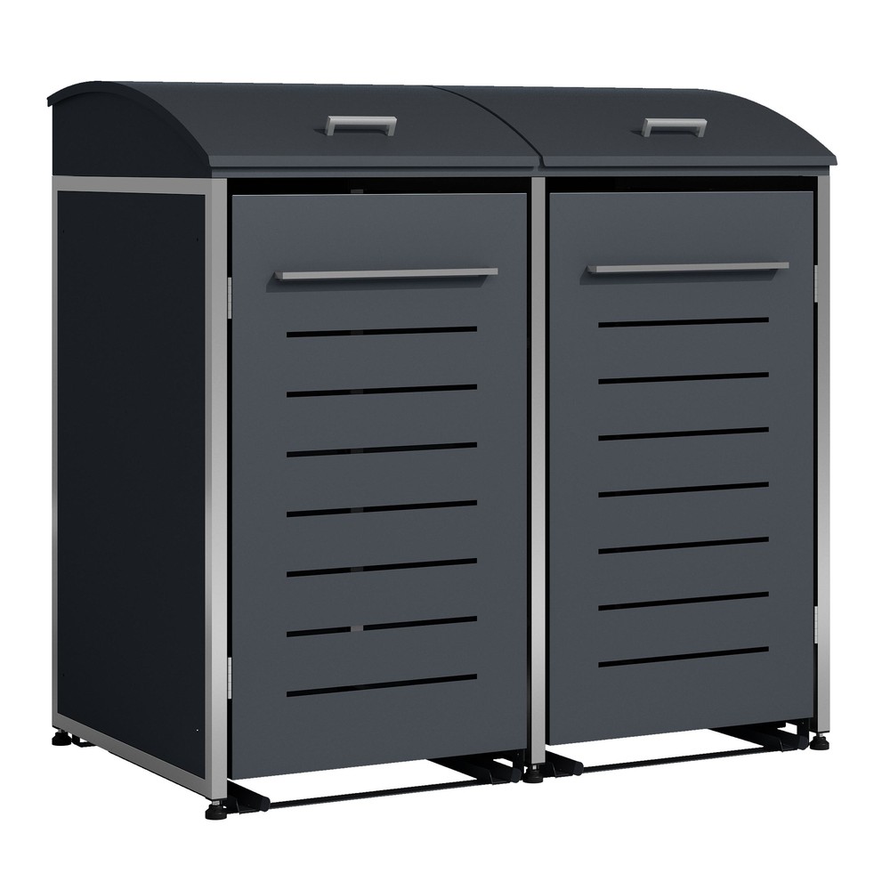 2er Mülltonnenbox aus Edelstahl in Anthrazit