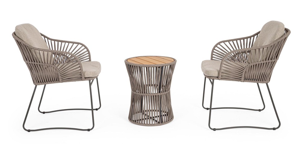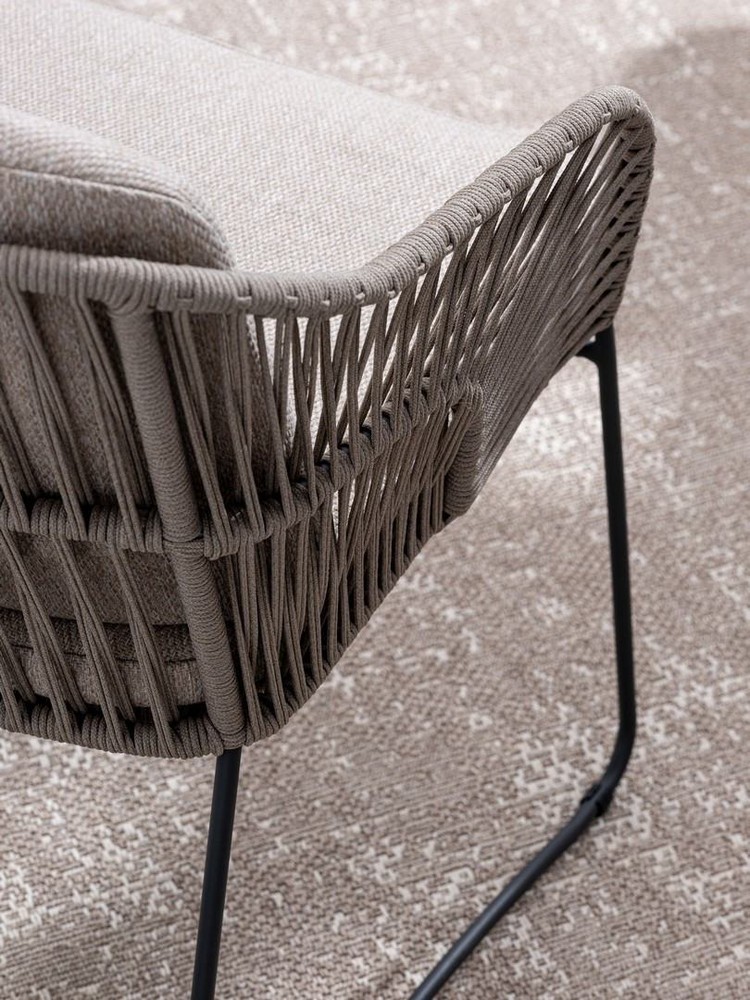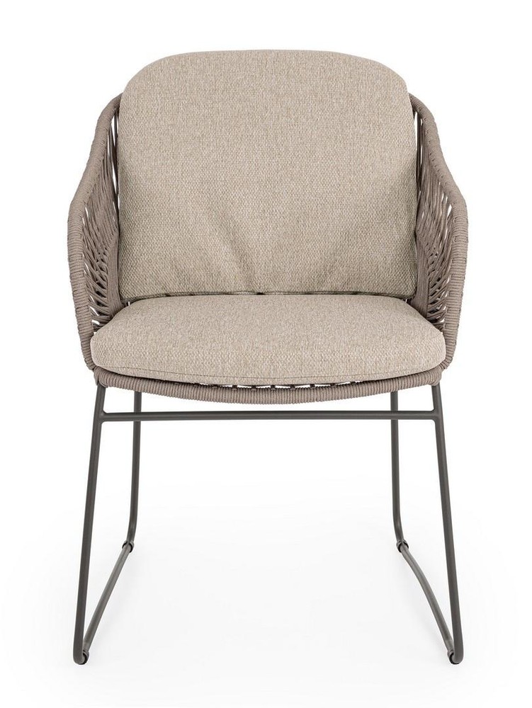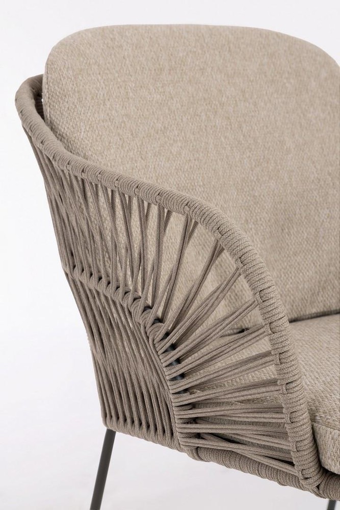 Dieses Set aus zwei Gartenstühlen bringt moderne Leichtigkeit und natürlichen Komfort in Ihren Outdoor-Bereich. Mit seinem sanften Beigeton, dem luftigen Seilgeflecht und den bequemen Kissen ist es die perfekte Wahl für alle, die ihren Garten, Balkon oder die Terrasse stilvoll gestalten möchten – ohne dabei auf Funktionalität zu verzichten. Die Struktur der Stühle besteht aus rostfreiem Stahl, der durch seine Langlebigkeit und Witterungsbeständigkeit überzeugt. Das pulverbeschichtete Finish in elegantem Beige fügt sich dezent und harmonisch in verschiedene Outdoor-Umgebungen ein – von modern-minimalistisch bis hin zu mediterran oder skandinavisch inspiriert. Die sanfte Farbgebung wirkt hell, freundlich und zugleich unaufdringlich. Für eine besonders leichte und zugleich stabile Anmutung sorgt das kunstvoll gespannte Seilgeflecht, das die Sitz- und Rückenflächen umspannt. Es verleiht den Stühlen eine luftige Optik, ist angenehm flexibel und sorgt selbst an warmen Tagen für ein angenehmes Sitzgefühl. Komfort bieten die passenden Sitz- und Rückenkissen, die farblich auf das Gestell abgestimmt sind. Die Bezüge bestehen aus hochwertigem Olefin-Gewebe, das sich besonders gut für den Einsatz im Freien eignet. Es ist wasserabweisend, sonnenbeständig, strapazierfähig und dabei angenehm weich im Griff. Die Bezüge lassen sich bei Bedarf abnehmen und reinigen – ideal für den unkomplizierten Einsatz im Alltag. Mit einer Breite von etwa 66 Zentimetern, einer Höhe von rund 83,5 Zentimetern und einer Tiefe von ca. 59 Zentimetern bieten die Stühle eine bequeme und entspannte Sitzposition. Ob zum Frühstück in der Morgensonne, zum Lesen am Nachmittag oder für gemütliche Abende im Freien – dieses Set lädt zum Verweilen ein.