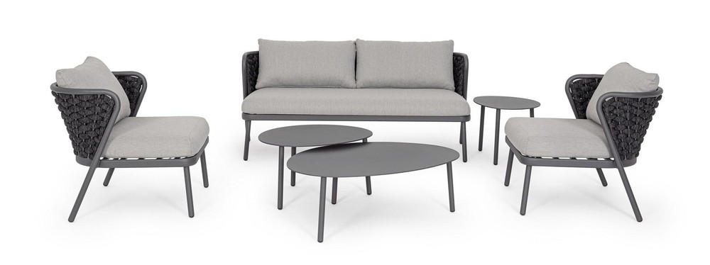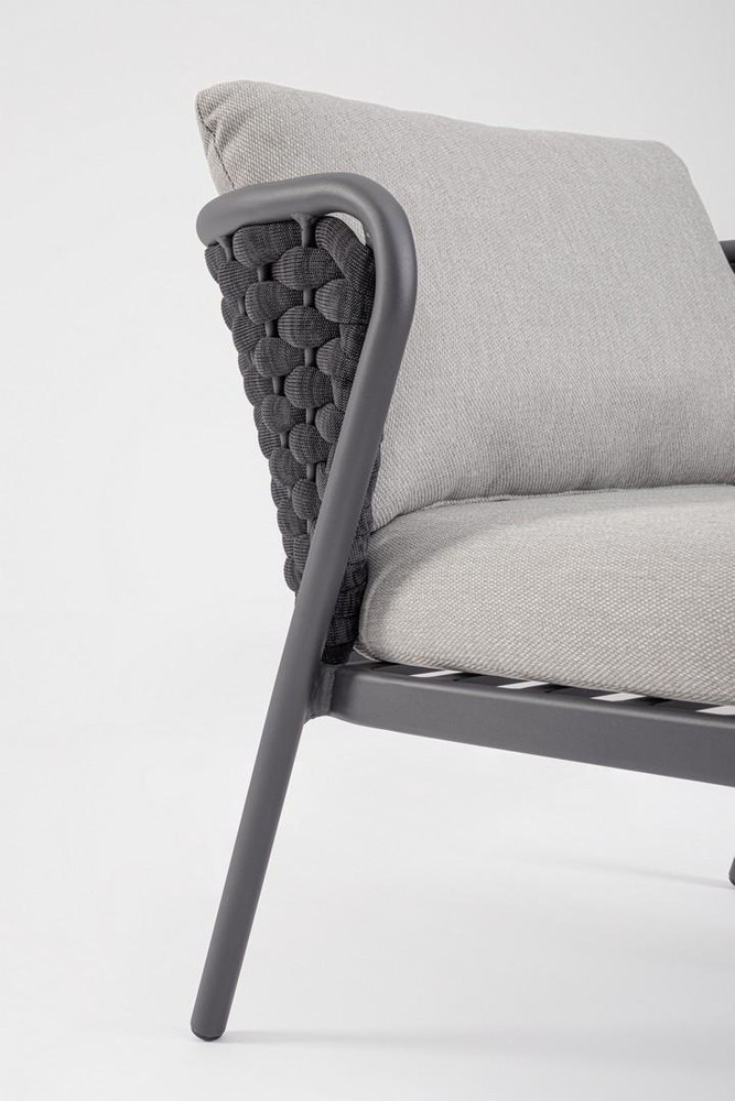 Dieses stilvolle 2er-Set Gartenstühle vereint modernes Design, hochwertigen Komfort und langlebige Materialien, die speziell für den Außenbereich konzipiert sind. Die Stühle fügen sich harmonisch in Garten, Terrasse oder Balkon ein und laden zum entspannten Verweilen ein. Das Gestell aus pulverbeschichtetem Aluminium in Anthrazit garantiert nicht nur Stabilität und Robustheit, sondern auch eine besonders witterungsbeständige Oberfläche, die UV-Strahlung und Korrosion zuverlässig trotzt. Das Geflecht aus textilen Seilen in Kombination mit einer Polsterung aus Nitrilgummi sorgt für flexible Sitzflächen, die sich angenehm an den Körper anpassen und gleichzeitig langlebig und pflegeleicht sind. Die Sitz- und Rückenkissen sind aus hochwertigem Polypropylen gefertigt, abziehbar und wasserabweisend, wodurch sie sich einfach reinigen lassen und auch bei leichtem Regen trocken bleiben. Die elegante graue Farbgebung unterstreicht das moderne, neutrale Design und lässt sich problemlos in unterschiedliche Außenbereiche und Einrichtungsstile integrieren. Mit großzügigen Maßen von ca. 77 x 80 x 73,5 cm (B x H x T) bieten die Stühle ausreichend Platz und Komfort für lange Sommerabende, gemütliche Frühstücke auf der Terrasse oder entspannte Stunden im Garten. Das durchdachte Design verbindet leichte Materialien mit stabiler Konstruktion, sodass die Stühle leicht zu transportieren und gleichzeitig äußerst belastbar sind.