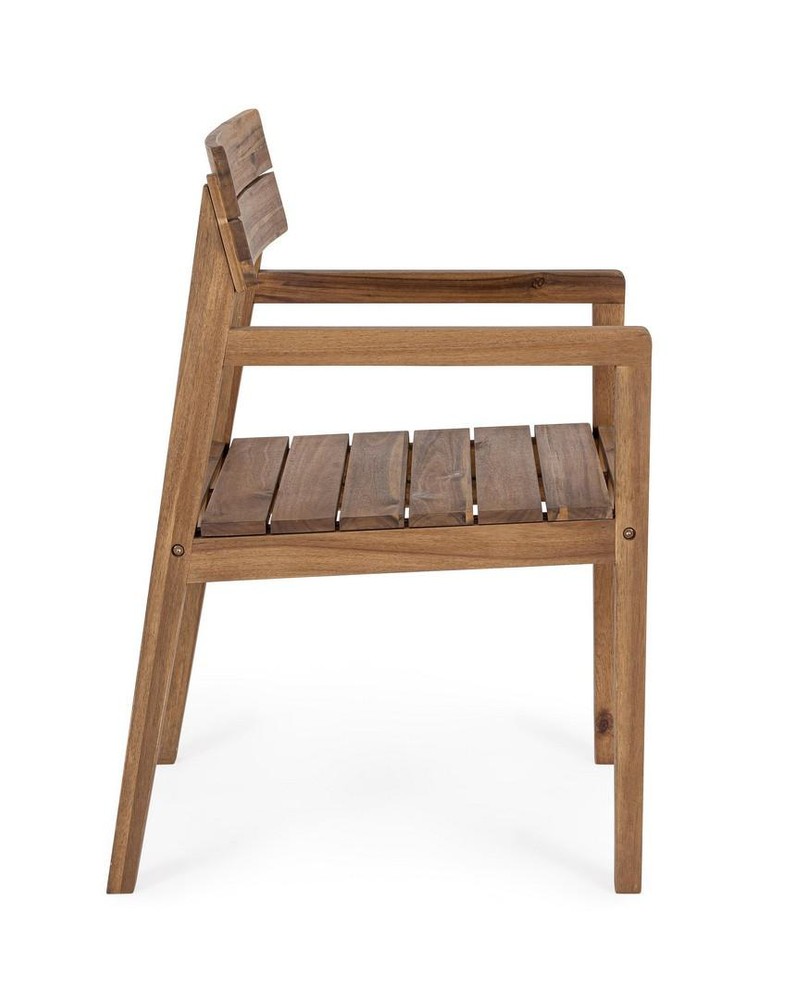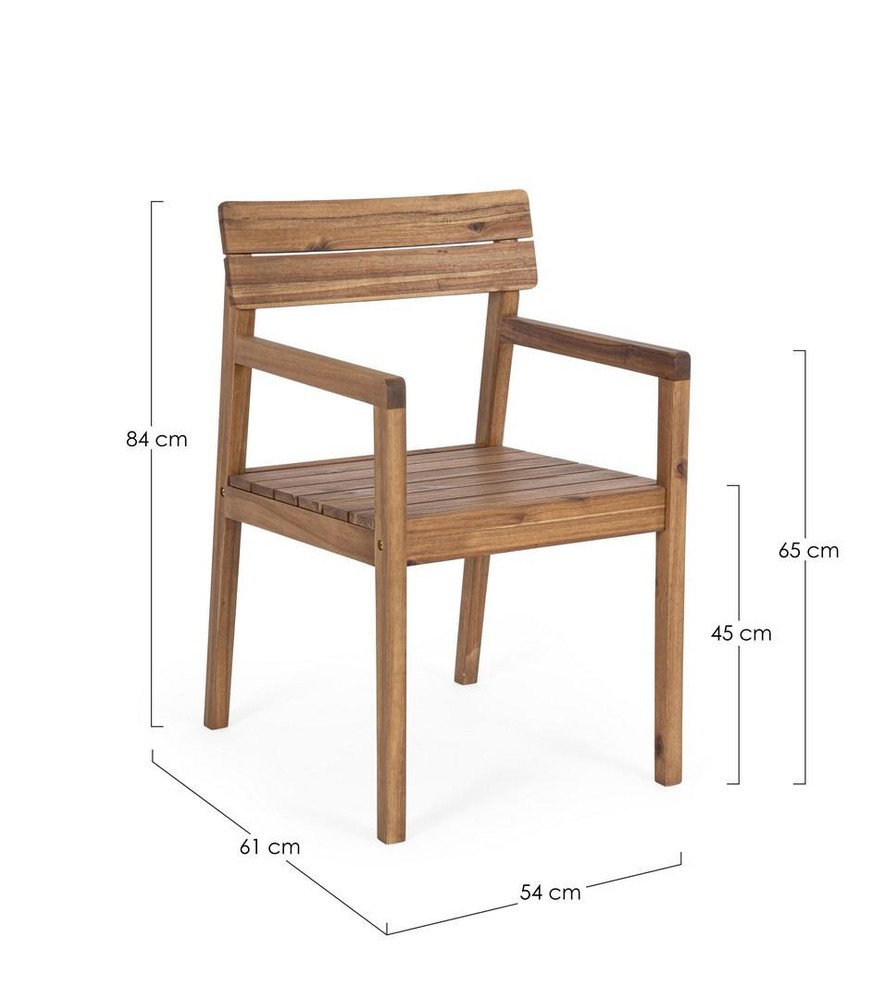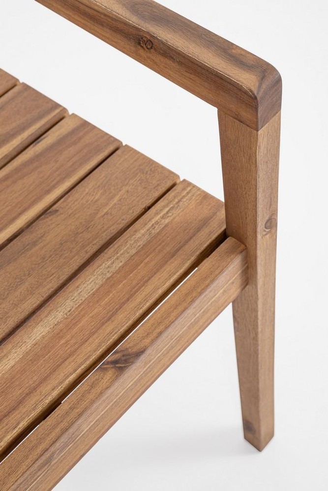 Dieses Set aus zwei stilvollen Stühlen aus massivem Akazienholz vereint natürliche Eleganz mit modernem Komfort und wird so zum Blickfang in jedem Wohn- oder Essbereich. Das geölte Finish des Holzes betont die warme, lebendige Maserung und sorgt für eine langlebige, pflegeleichte Oberfläche. Jeder Stuhl ist somit ein individuelles Unikat, das zeitlose Schönheit mit hoher Funktionalität verbindet. Die Armlehnen und die nach vorne geneigte Rückenlehne bieten optimalen Sitzkomfort und unterstützen eine entspannte, ergonomische Haltung. Sowohl Rückenlehne als auch Sitzfläche bestehen aus Lamellen, die für eine luftige, offene Optik sorgen und gleichzeitig die Stabilität und Belastbarkeit der Stühle erhöhen. Die Lamellen verleihen den Möbelstücken zudem eine harmonische, rhythmische Struktur, die moderne Gestaltung und natürliche Materialien gekonnt miteinander verbindet. Mit den Maßen von ca. 61 x 84 x 54 cm (Breite x Höhe x Tiefe) bieten die Stühle ausreichend Platz für bequemes Sitzen, ohne dabei zu wuchtig zu wirken. Sie lassen sich flexibel an Esstischen, Schreibtischen oder in Lounge-Bereichen platzieren und passen sowohl in klassische als auch in moderne Raumkonzepte. Die Kombination aus hochwertigem Akazienholz, präziser Verarbeitung und durchdachtem Design macht dieses Stuhl-Set zu einer langlebigen Investition in Stil und Komfort. Ein Möbelstück, das Natürlichkeit, Ergonomie und zeitlose Ästhetik perfekt vereint.