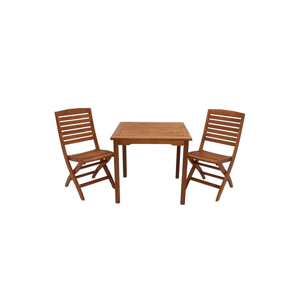 Diese 3-teilige Garnitur aus Eukalyptusholz vereint natürlichen Charme mit hoher Funktionalität und langlebiger Qualität. Sie besteht aus zwei Klappsesseln und einem kompakten Tisch, die zusammen ein harmonisches Ensemble für Terrasse, Balkon oder Garten bilden. Das warme, geölte Holz sorgt für eine natürliche Ausstrahlung und verleiht jedem Außenbereich eine gemütliche Atmosphäre. Die Klappsessel zeichnen sich durch eine praktische Lamellenstruktur bei Sitz und Rückenlehne aus, die für Komfort und eine gute Luftzirkulation sorgt. Dank der Klappfunktion lassen sich die Sessel bei Nichtgebrauch platzsparend verstauen oder flexibel umstellen. Mit Maßen von ca. 45 cm Breite, 93 cm Höhe und 57 cm Tiefe bieten sie einen komfortablen Sitzplatz, ohne zu viel Raum einzunehmen. Der Tisch ist ebenfalls aus geöltem Eukalyptusholz gefertigt und überzeugt durch seine Rillen in der Tischplatte, die sowohl optisch als auch funktional Akzente setzen. Mit den Maßen von ca. 75 cm Breite, 75 cm Höhe und 75 cm Tiefe bietet er ausreichend Platz für Snacks, Getränke oder Dekoration, ohne den Bereich zu überladen. Die hochwertige Ölbehandlung schützt das Holz vor Witterungseinflüssen und betont die natürliche Maserung, sodass die Garnitur ihre elegante Optik über viele Jahre behält. Ein kompaktes, stilvolles Set, das natürliche Materialien mit praktischem Design vereint und sich ideal für gemütliche Stunden im Freien eignet.